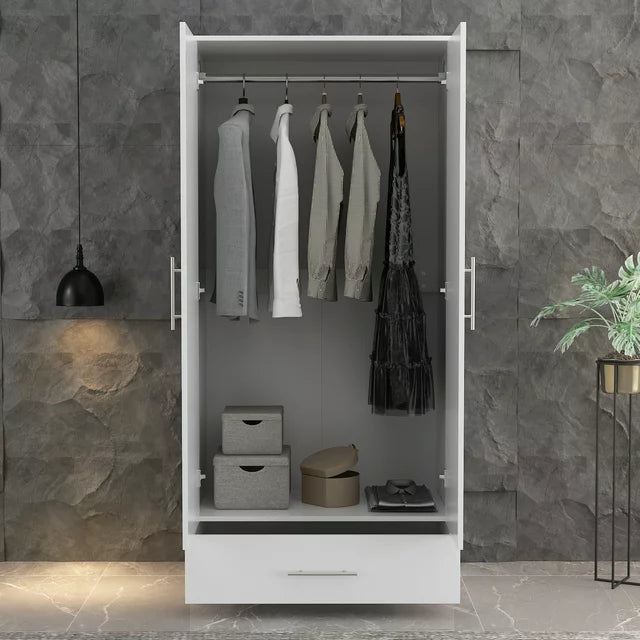 2 Door Armoire Wardrobe Cabinet with Drawer for Bedroom White
