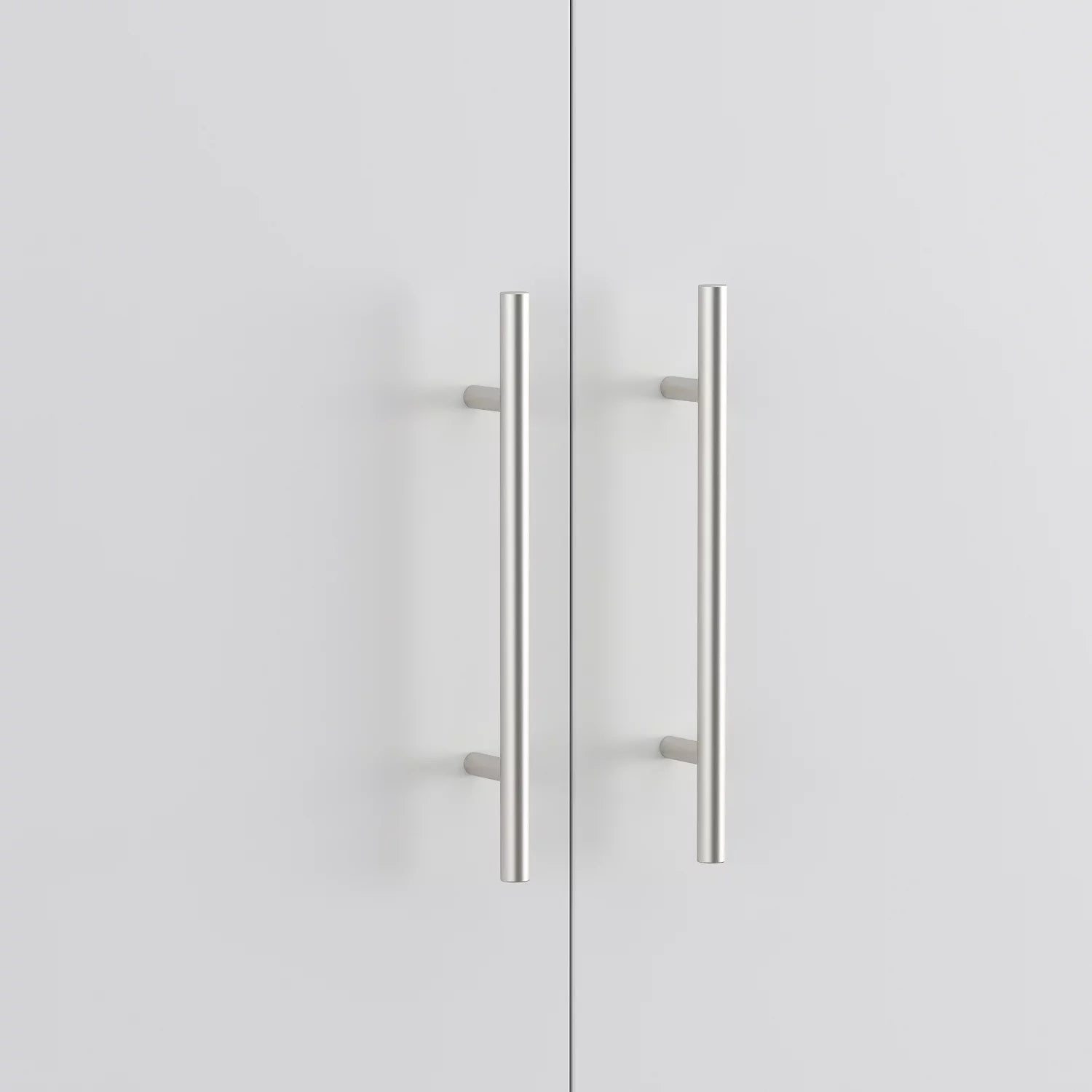 The 2-Door Armoire is a beautiful, versatile addition to any bedroom. Crafted from wood grain and strikes a tall rectangular silhouette,this clothing rack with shelves create the versatile storage options that your bedroom needs while adding the beautiful style and charming design that you want. Two doors open to reveal a clothing rod, perfect for hanging coats, making your clothes management more efficient. Available in a laminated finish in a variety of colors. Featuring multiple storage spaces to organize your clothing. This Armoire blends well with both traditional and contemporary decors. Finished in white and detailed with frame and panel doors and sides, this tall cabinet is perfect for the kitchen, basement, garage, or anywhere you need a storage solution.