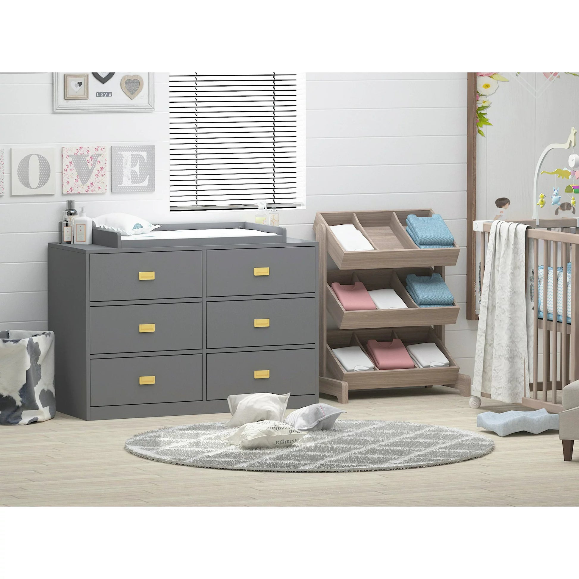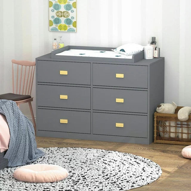 Baby 6 Drawer Dresser with Changing Top Storage Dresser for Nursery/Bedroom Gray