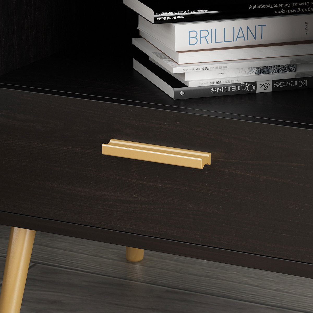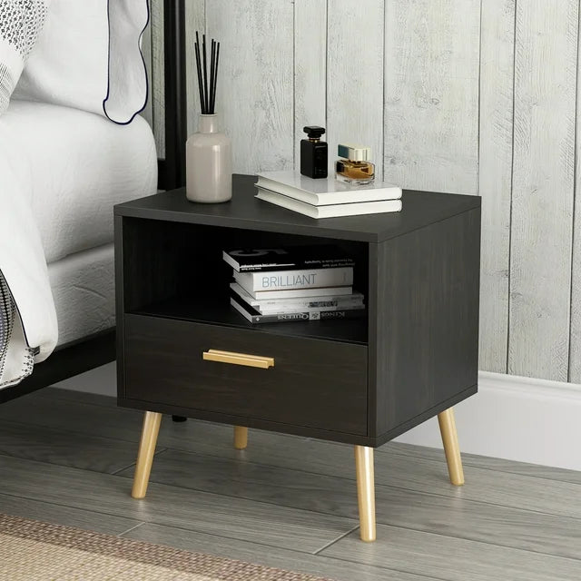 - Mid Century Modern Design: Moonlighting as an end table or armchair sidekick, the nightstand is seamless and sophisticated, with plenty of Mid-century flair, enhanced by fashionable gold splayed legs, cool metal drawer handles, and clean lines, to feature one sophisticated design.
