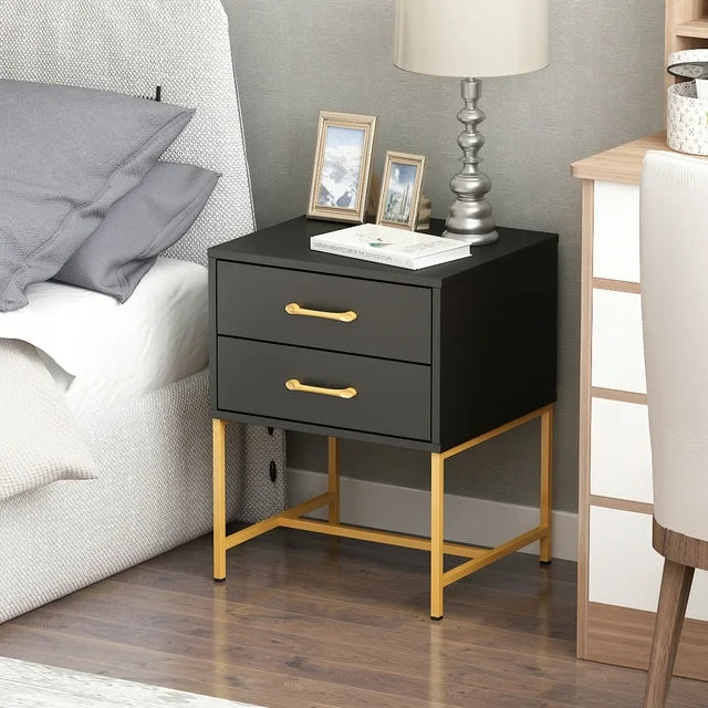 End Side Table with 2 Drawer and Storage Shelf, Night Stand Bedside Table for Bedroom, Living Room, Black