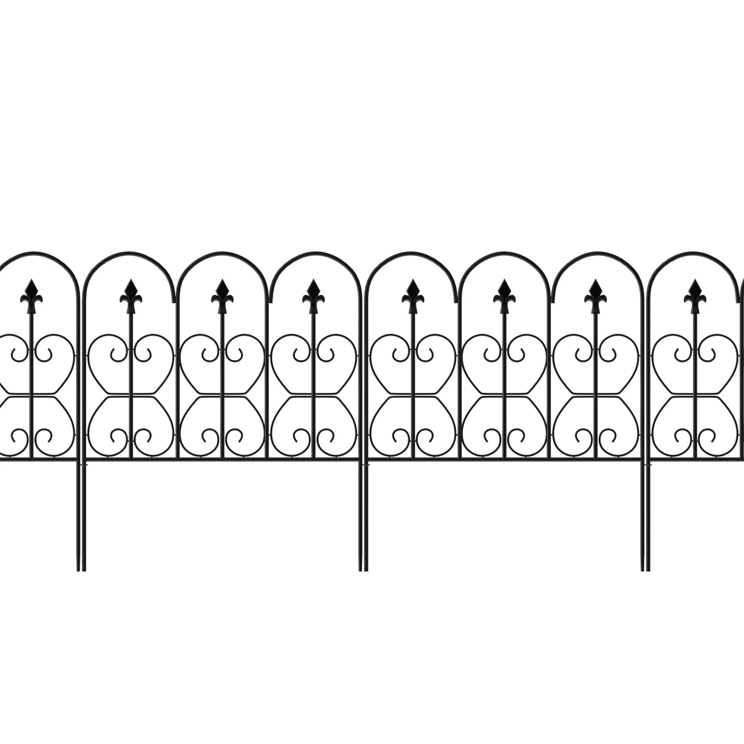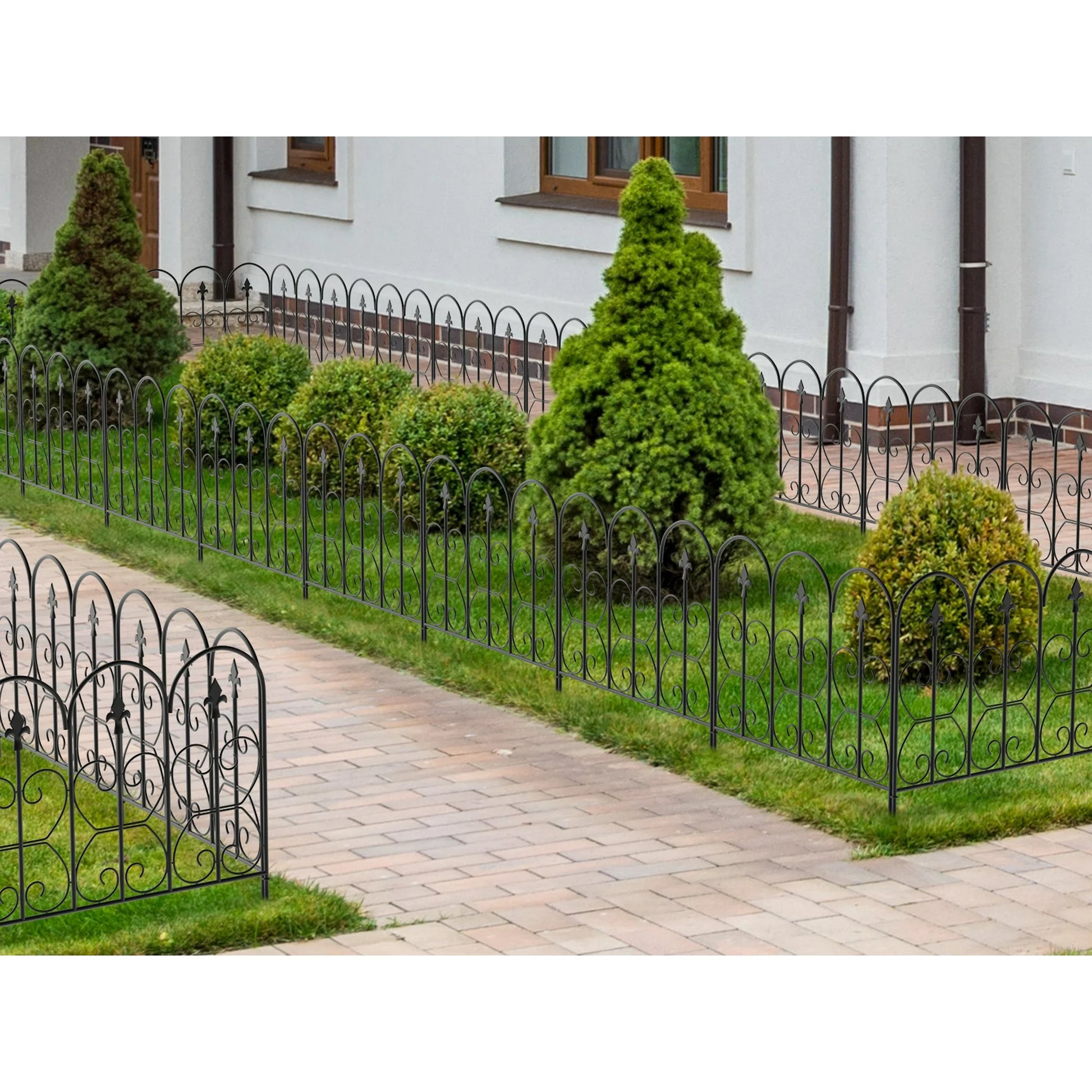 SIZE & RUSTPROOF MATERIAL: Decorative metal garden fence with single panel size 32" high x 24" wide, 5 Panels in total. This metal fence panels for front yard is made of black Iron with vinyl pvc powder coated surface will enable you to use the garden fence outdoors durably; the decorative black iron garden flower bed fencing animal barrier is made of rustproof and weather resistant metal material.