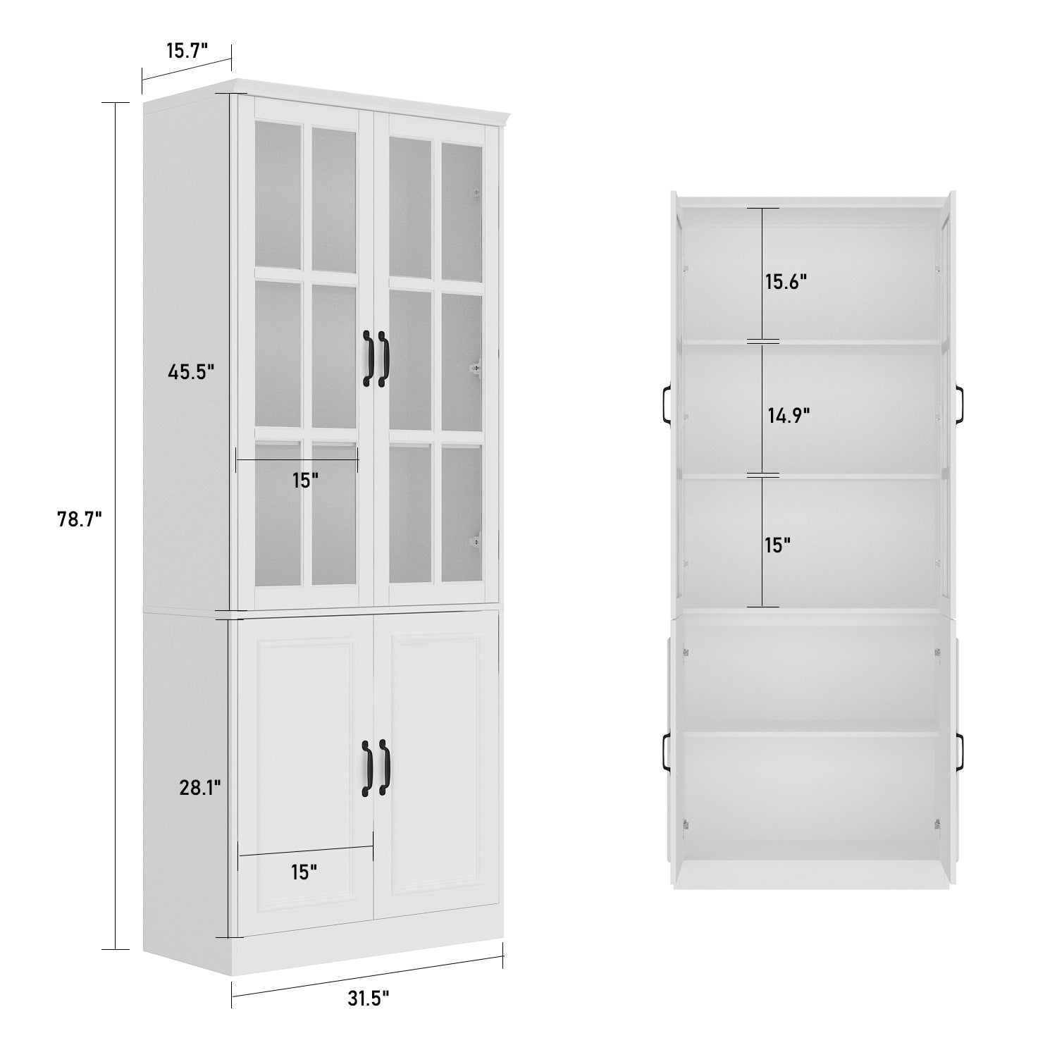 - Overall Dimension: 31.5” W x 15.7” D x 78.7” H.