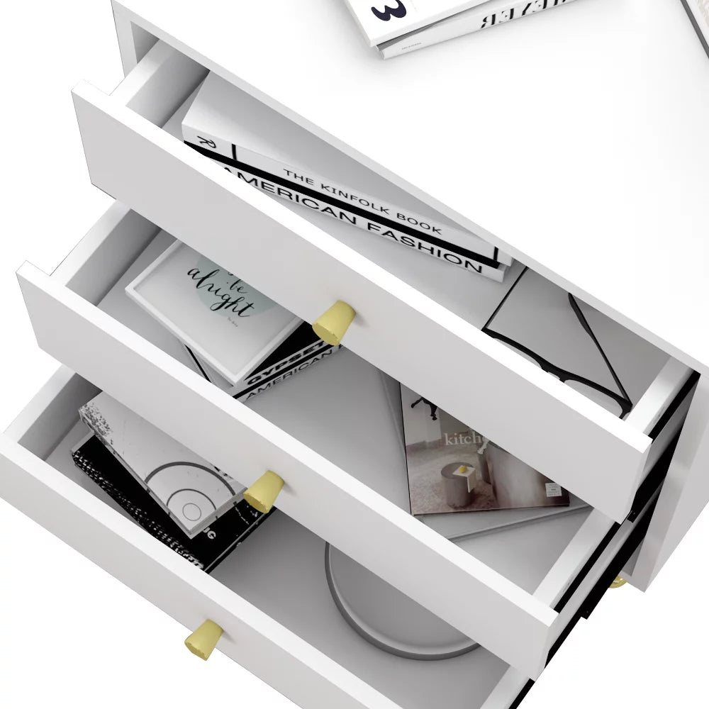 Nightstand Bedside Table, Side End Table with Metal Leg - Three Storage Drawers- Sofa Table Night Stand for Living Room, Bedroom (White)