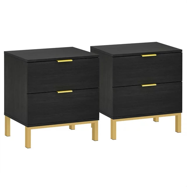 Nightstand with 2 Drawers, Bedside Furniture End Table Dresser for Bedroom Living Room, Black, Set of 2