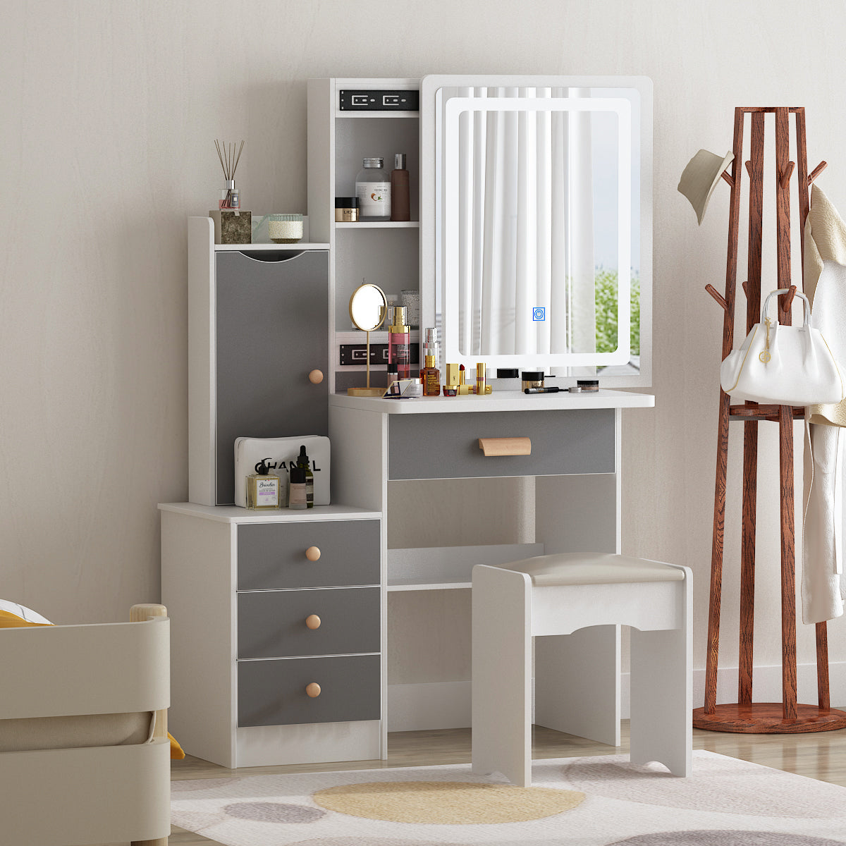 - Adequate storage capacity: Drawers and shelves on the desktop provide you with plenty of storage space. The large storage space allows you to put all your skin care products, cosmetics, jewelry and other beauty supplies