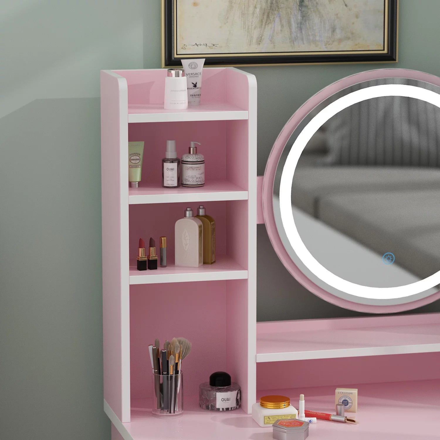 Vanity Set with Mirror and Lights Modern Storage Makeup Dressing Table with 5 Drawers Pink
