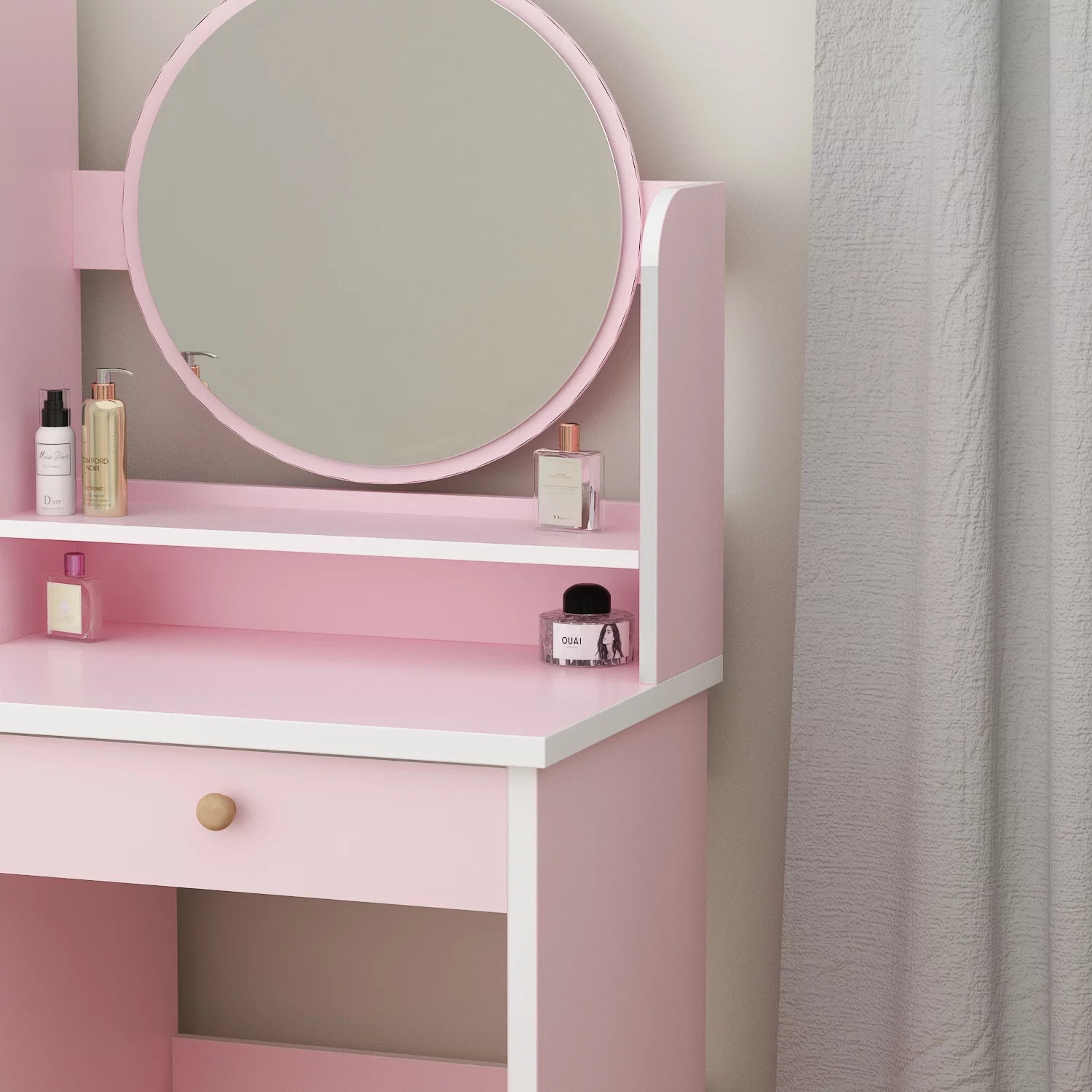 Vanity Set with Mirror Modern Storage Makeup Dressing Table with 5 Drawers Pink