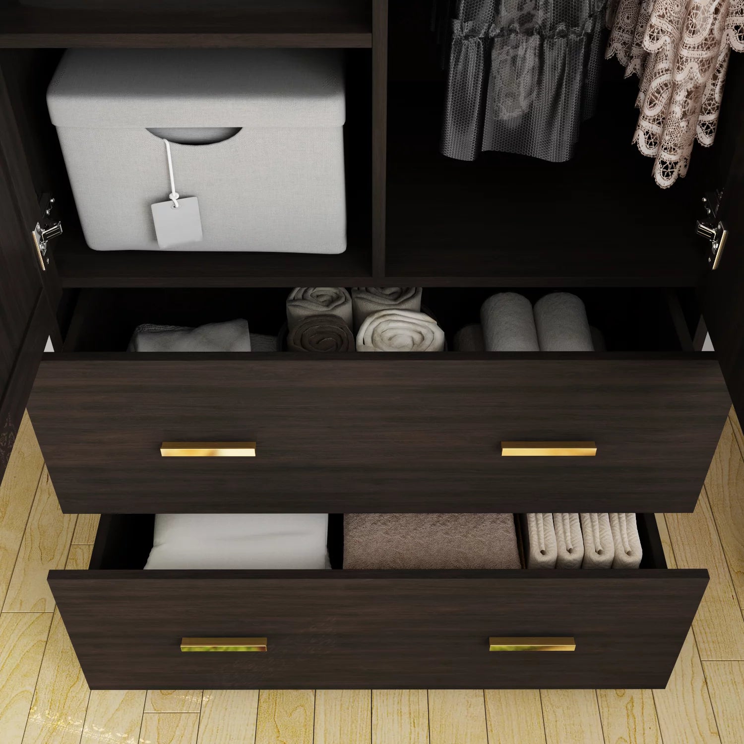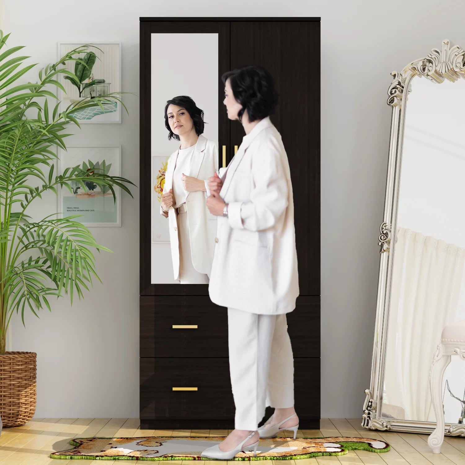 WIAWG 2-Door Armoire Wardrobe with 2 Drawers, Clothing Rod and Mirror in Espresso
