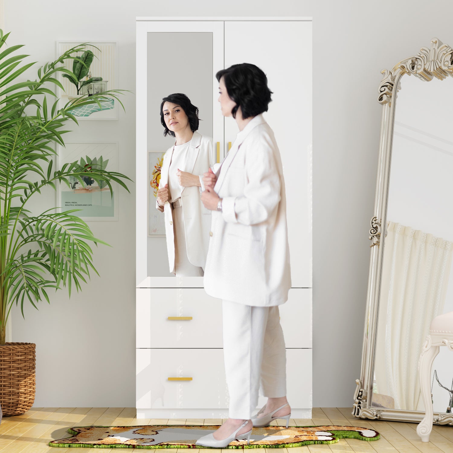 WIAWG 2-Door Armoire Wardrobe with 2 Drawers, Clothing Rod and Mirror in White
