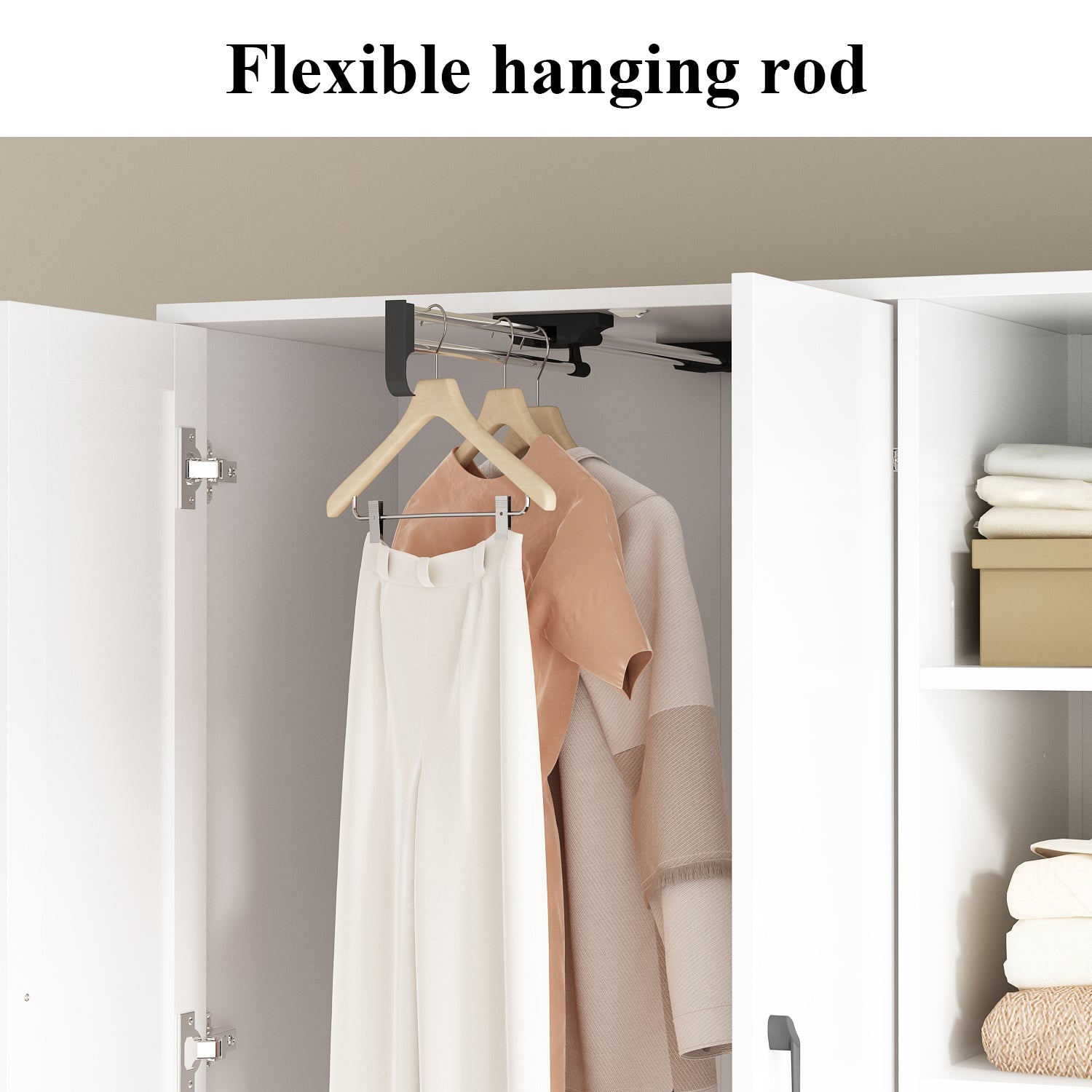 - [Ample Storage Space]Extendable metal rod & multi-tier shelf : Provides full-length hanging for dresses, suits, and coats to prevent wrinkles, plus hidden shelves for shirts, bags, and accessories. Keep your wardrobe organized and clutter-free.