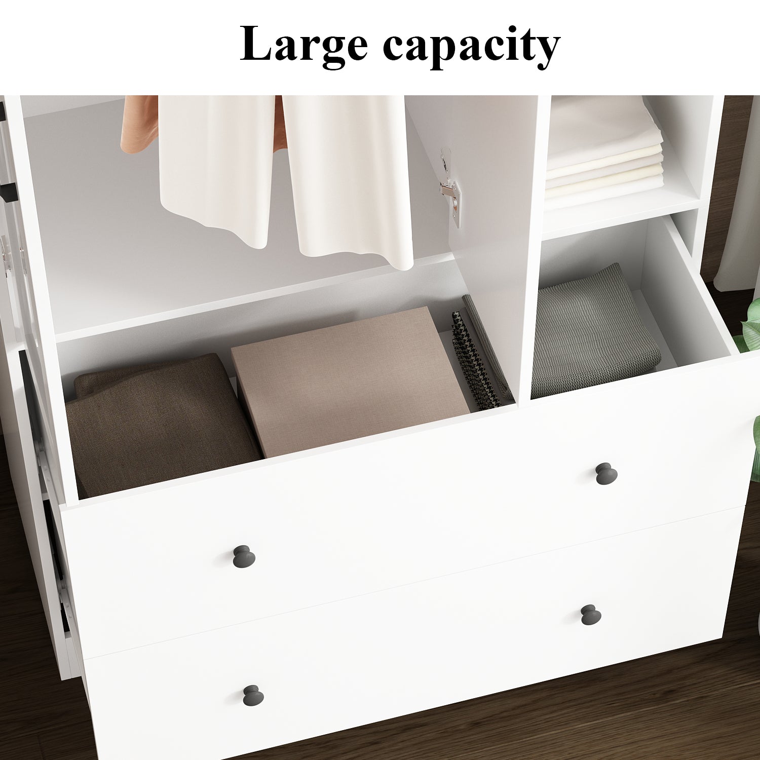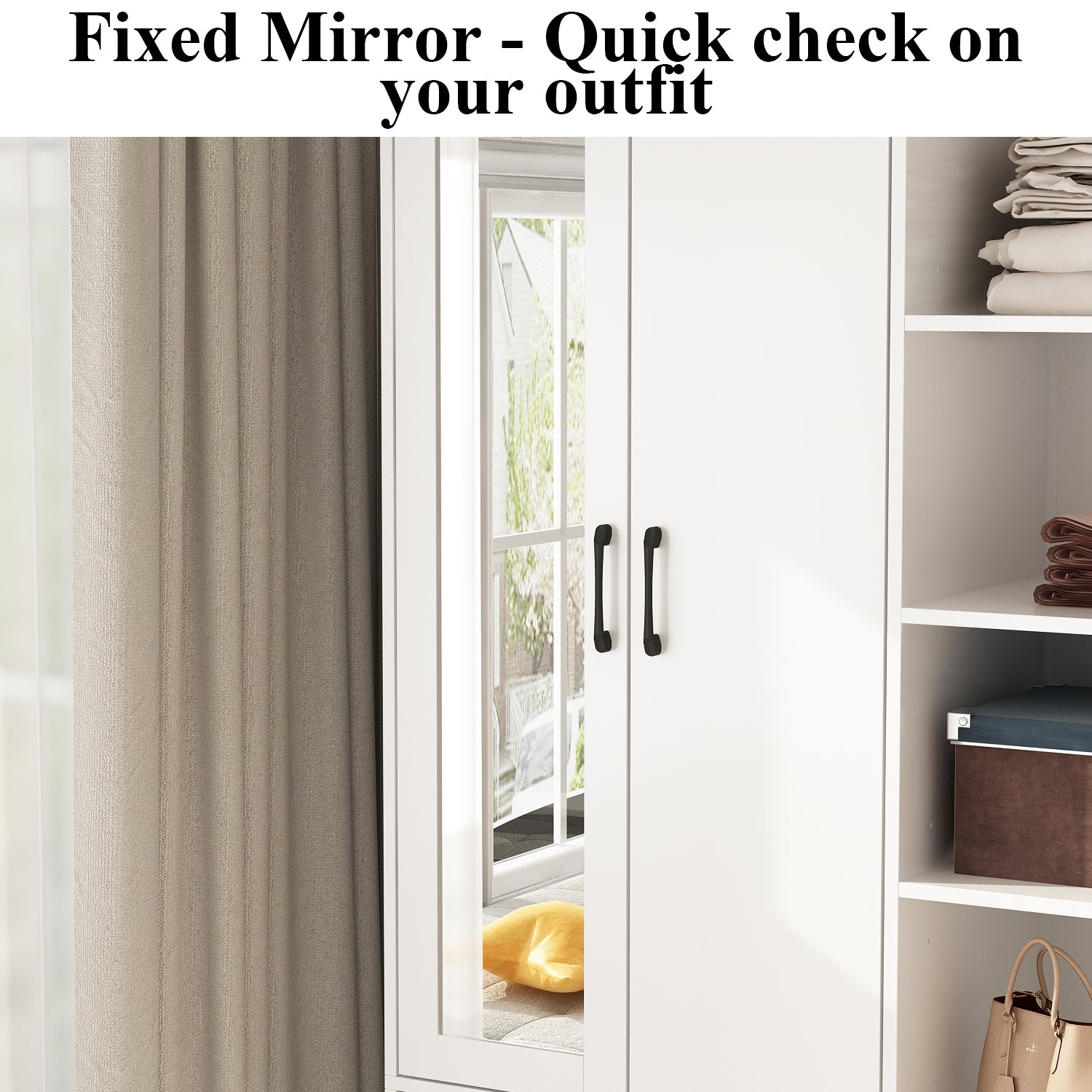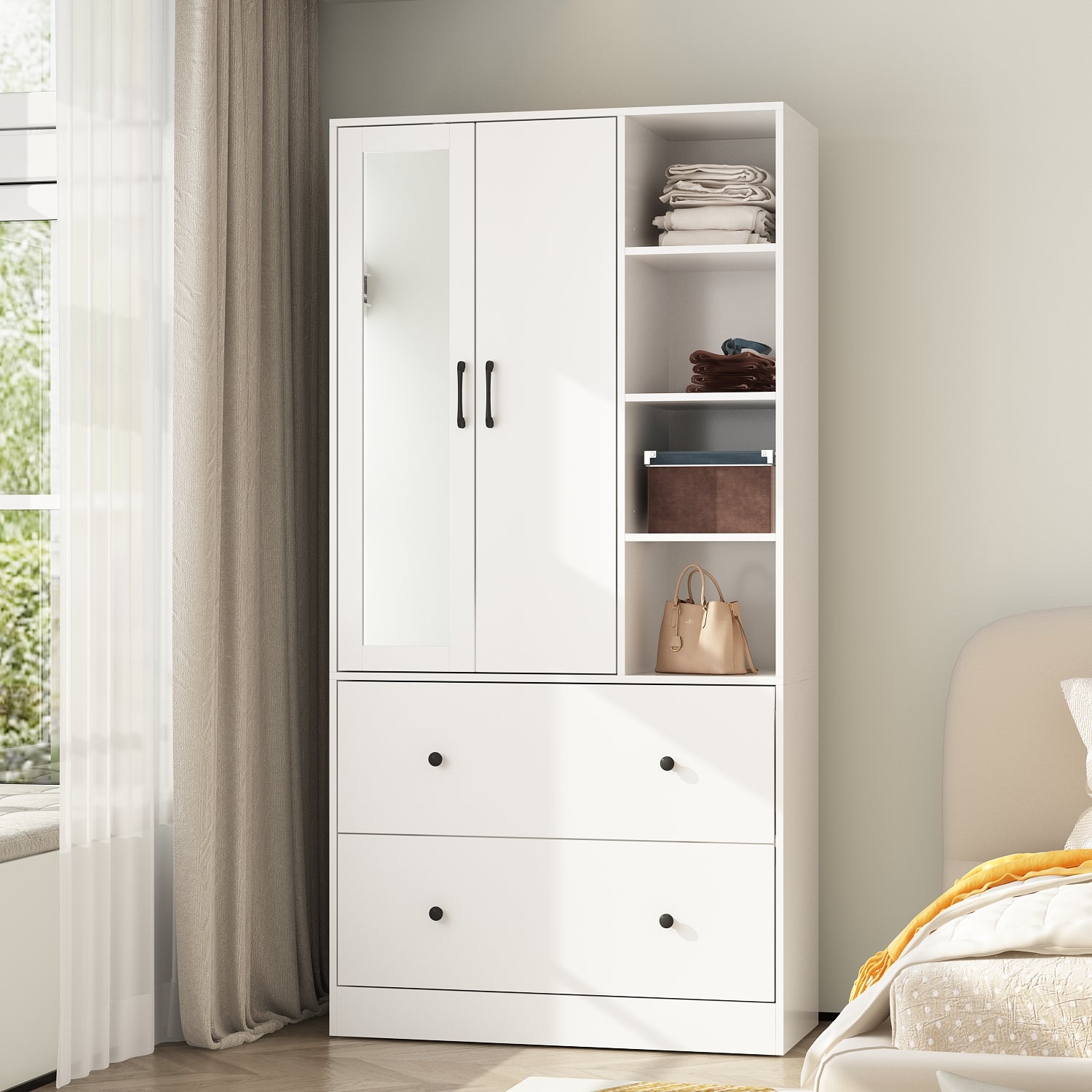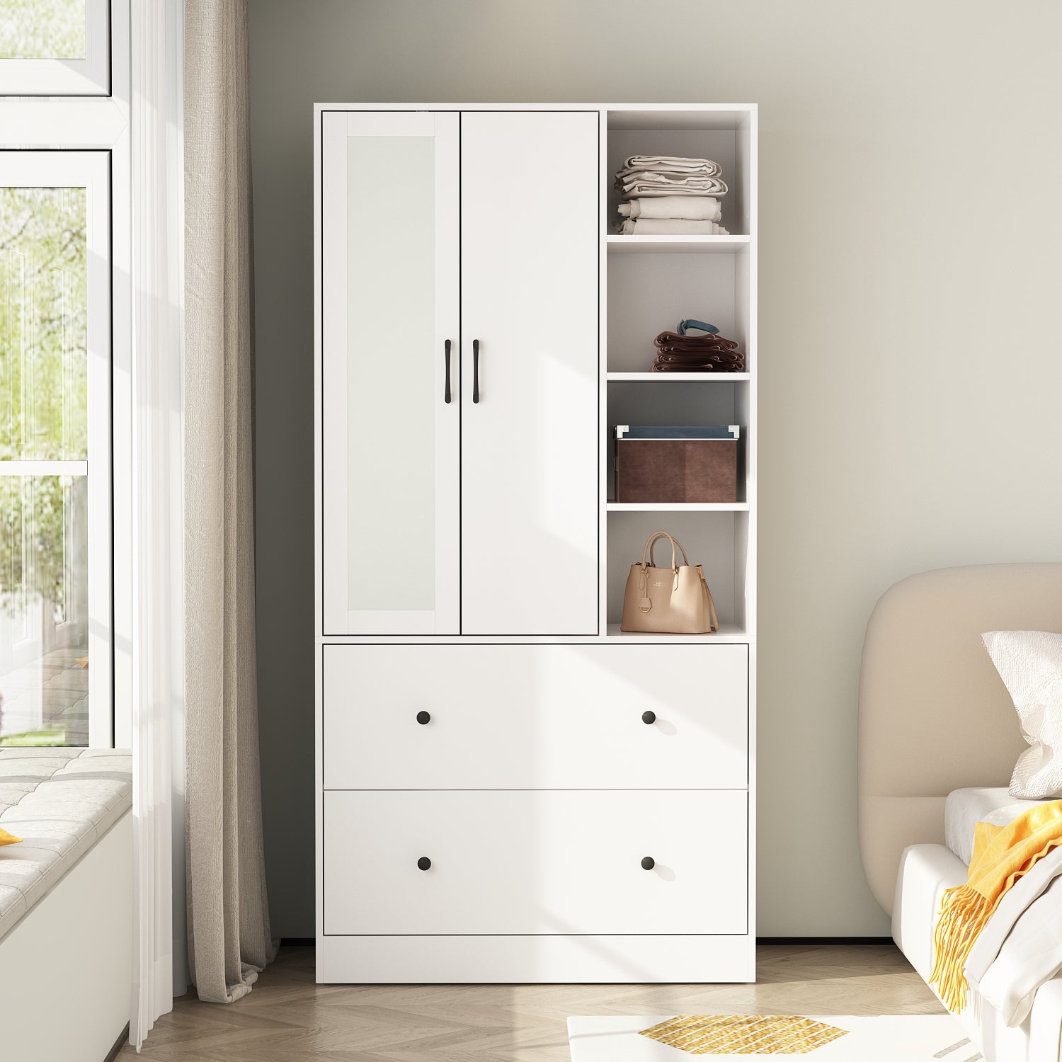 Wiawg 2 Door Wardrobe Armoire,Mirrored Closet Storage with Drawers and Shelves,White