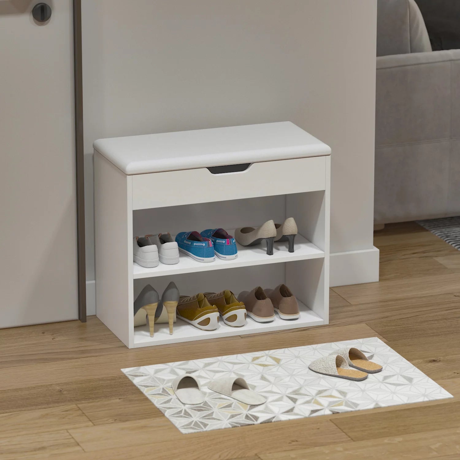 - 2-Tier Entryway Shoe Storage Bench with PU Cushion