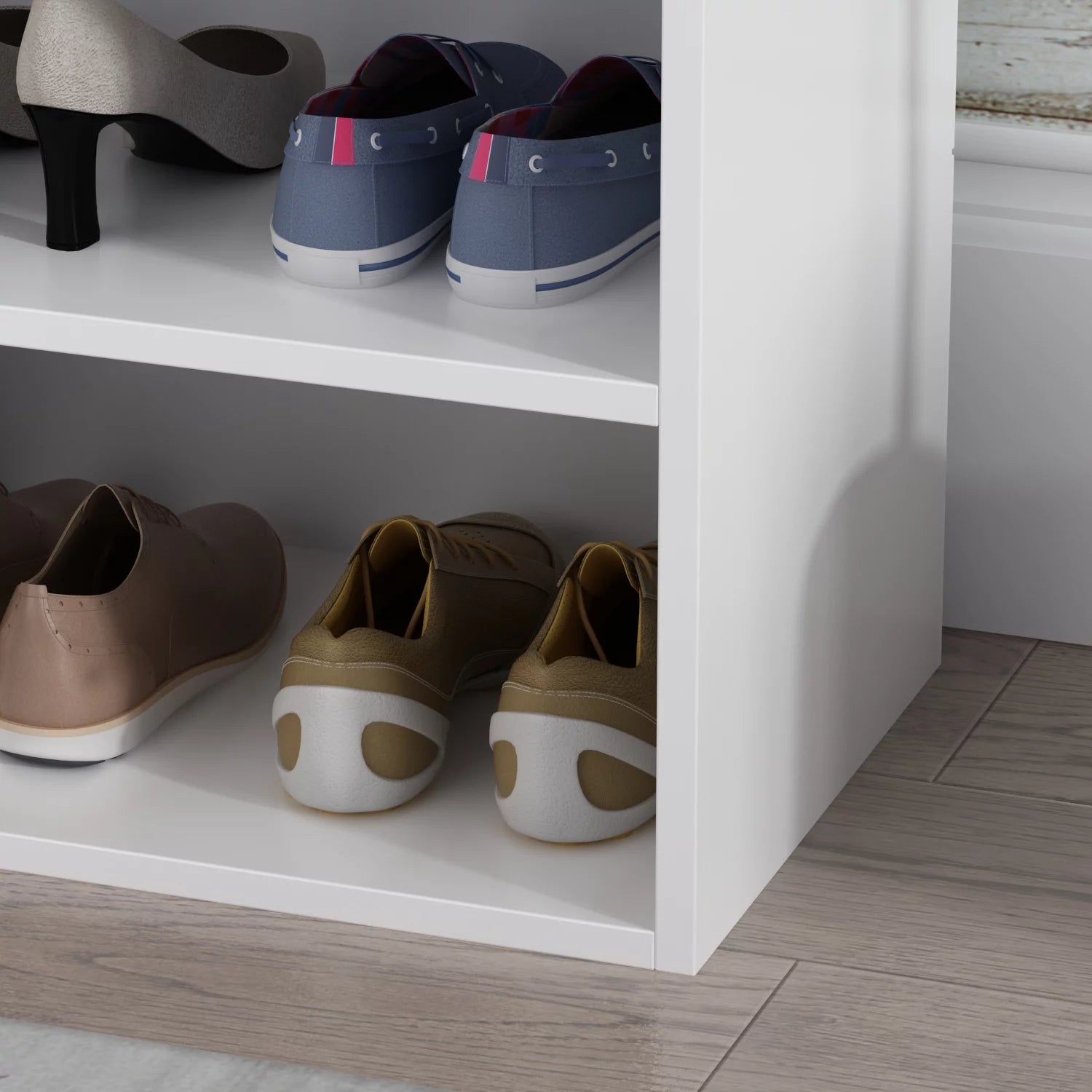 WIAWG 2 Tier Entryway Hallway Shoe Storage Bench with Seat Wooden Shoe Cabinet White Painted