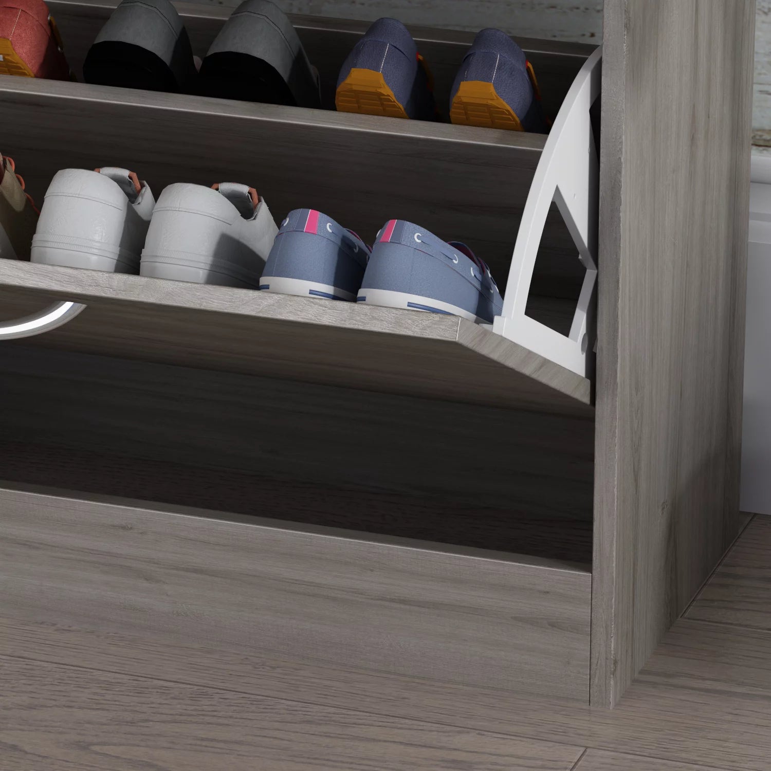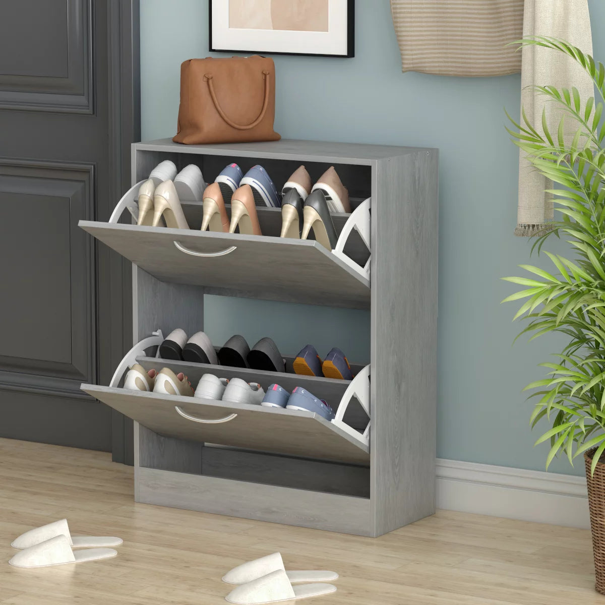 - The shoe cabinet keeps your shoes organized and off the floor