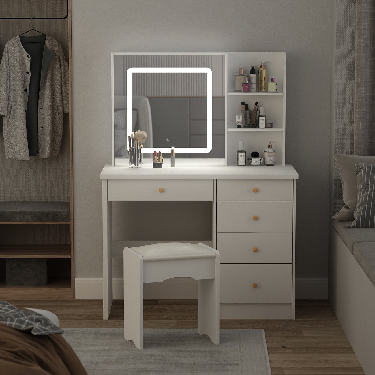 - The large desktop can be switched between the dressing table and the writing table