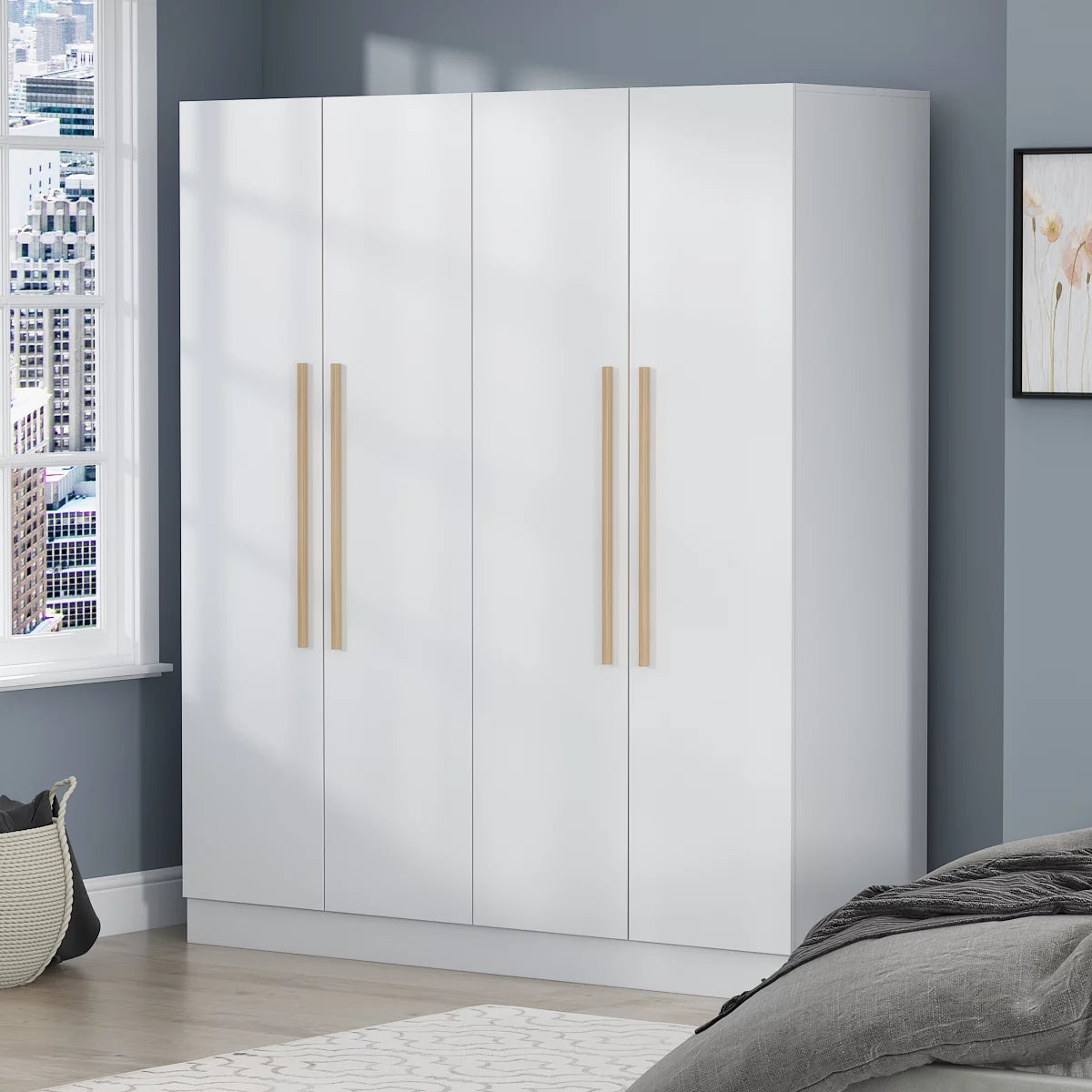 WIAWG 4 Door Wardrobe Armoire Closet with Hanging Rods and Shelves White