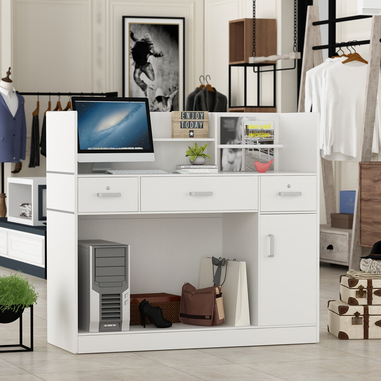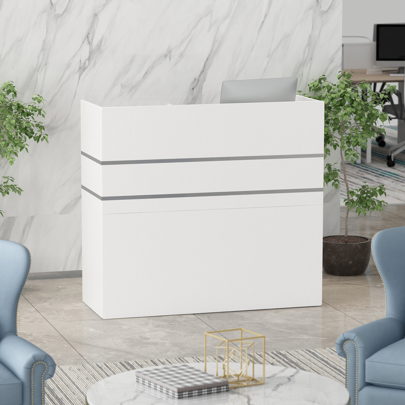 WIAWG 47.2" Office Reception Station with Counter, Solid White
