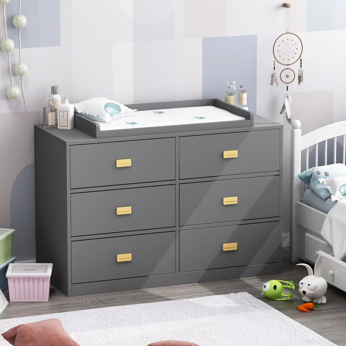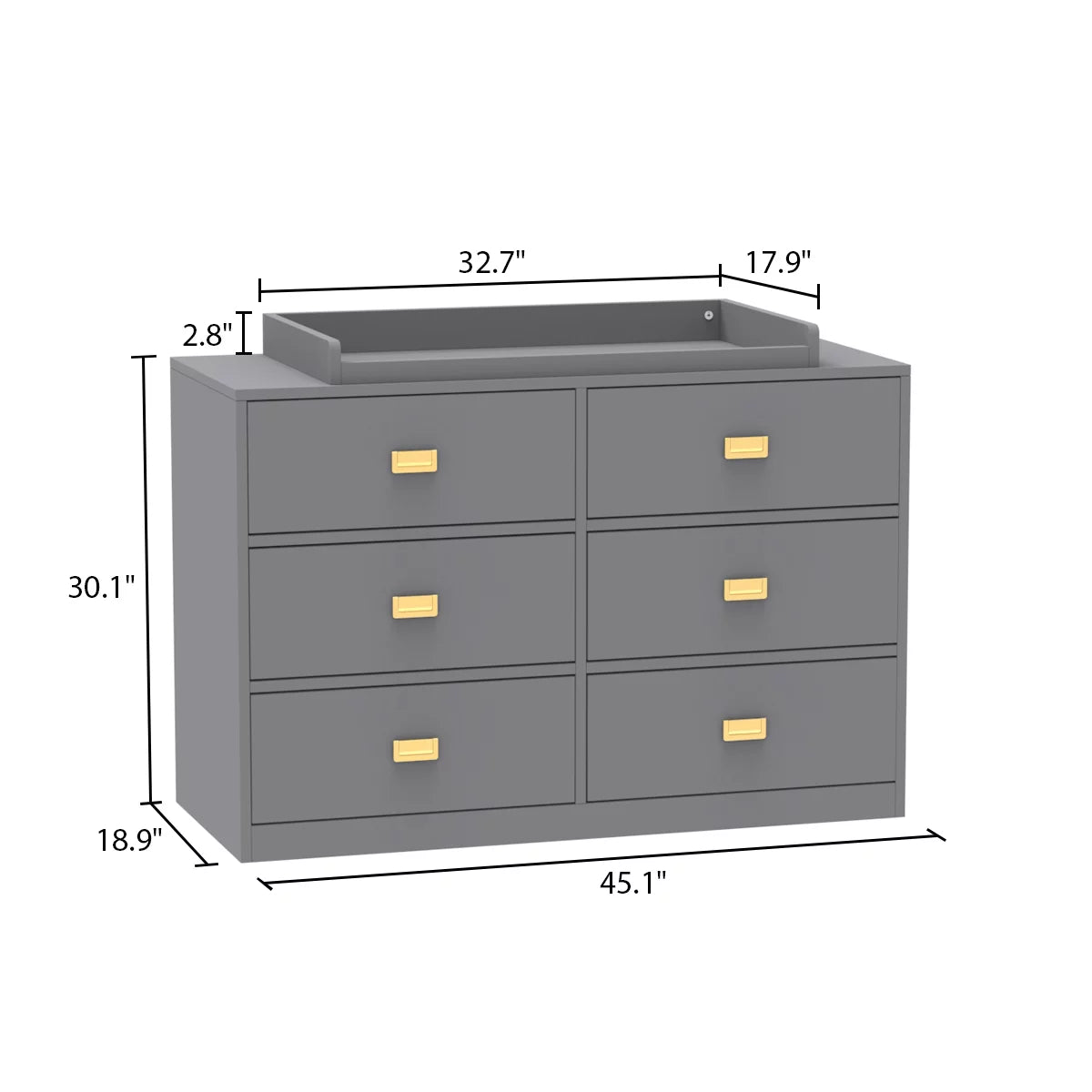 WIAWG 6 Drawer Baby Changing Table Dresser Storage Organizer Drawer Chest Gray