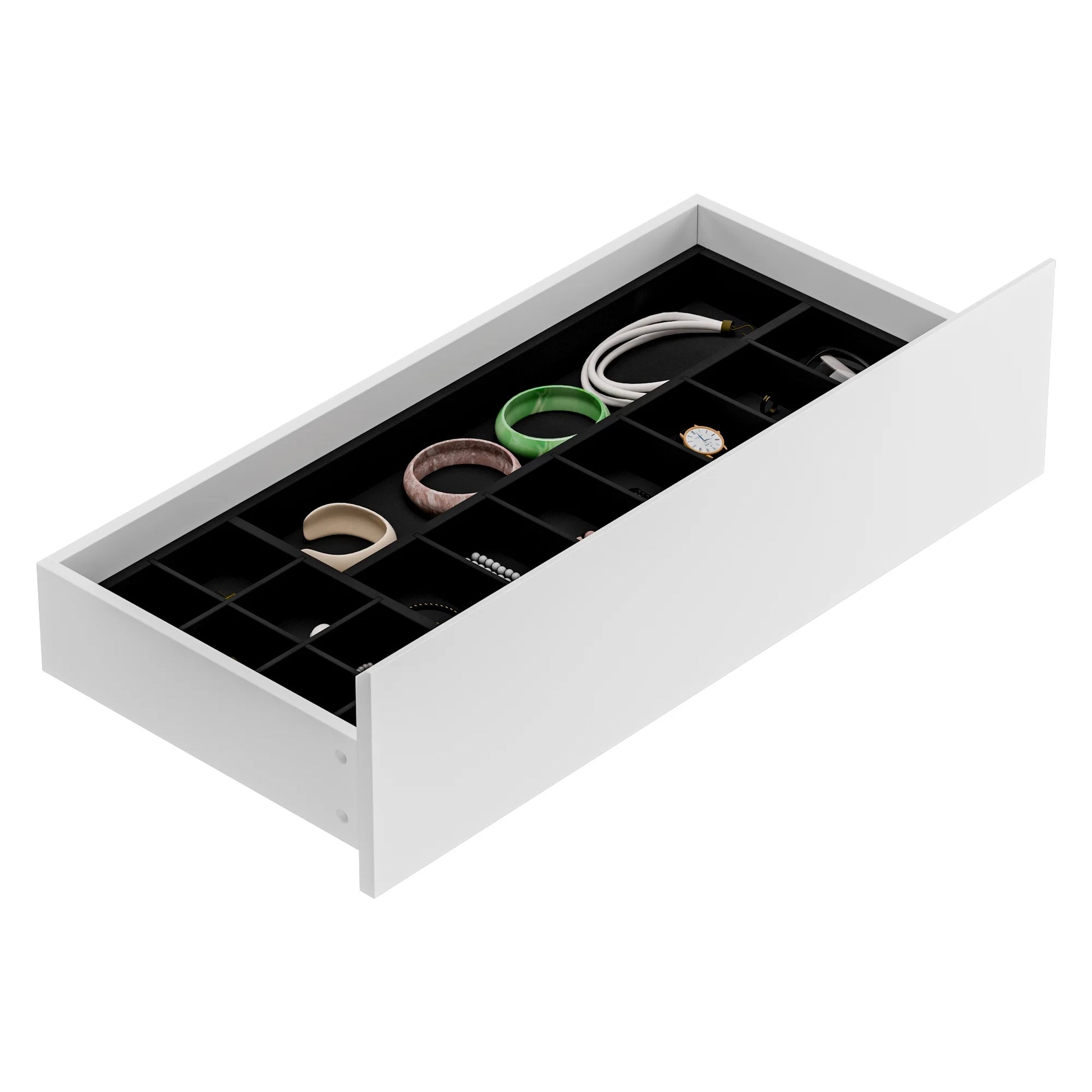 The glass visualized countertop is not only convenient for finding items, but also enhances the sense of space transparency. The countertop drawer is used as a jewelry storage drawer, and can also hold various items such as socks, tie, scarf, cosmetics and skincare.