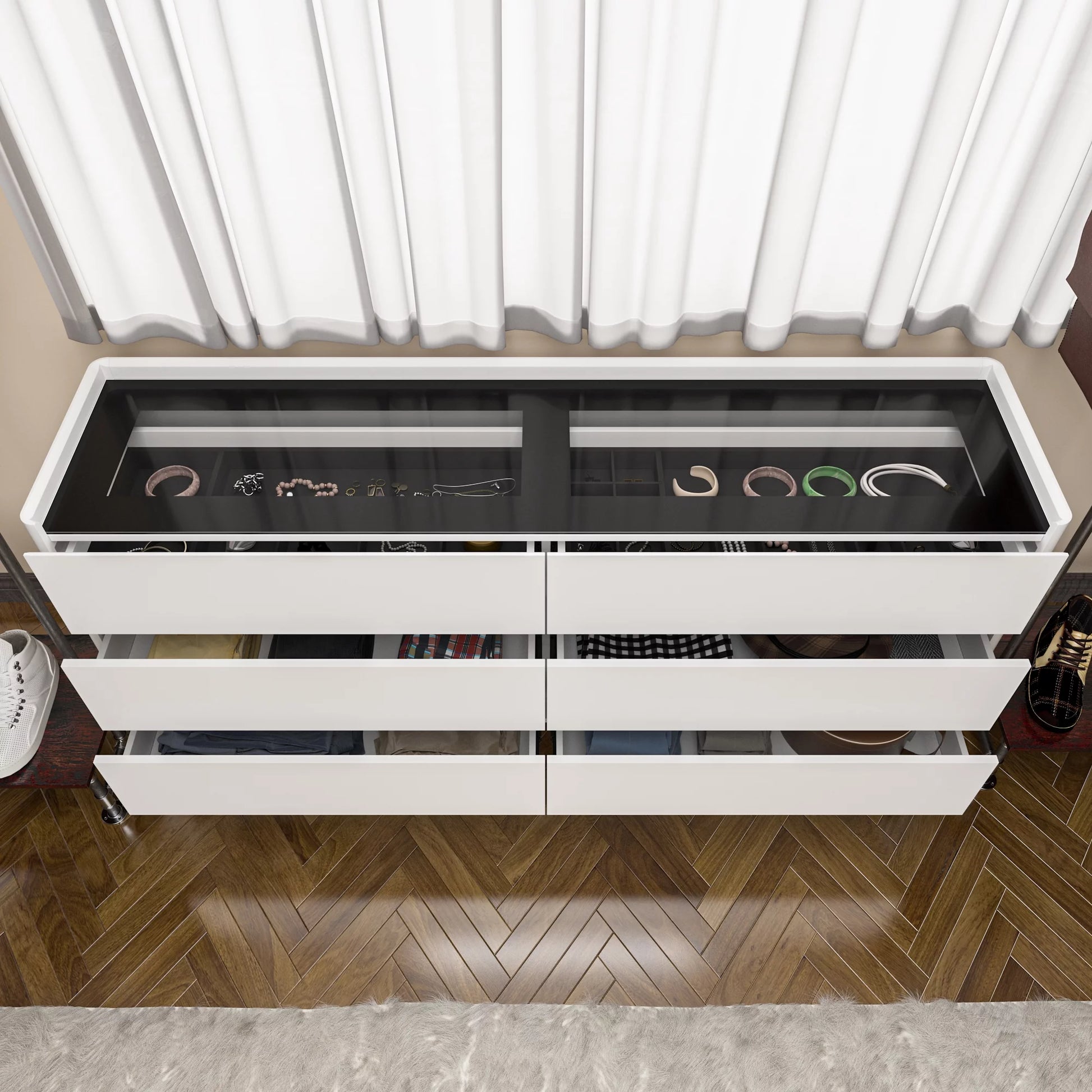 WIAWG 6 Drawer Dresser for Bedroom, Chest of Drawers with 2 Classified and 4 Wide Storage Drawers for Bedroom, White