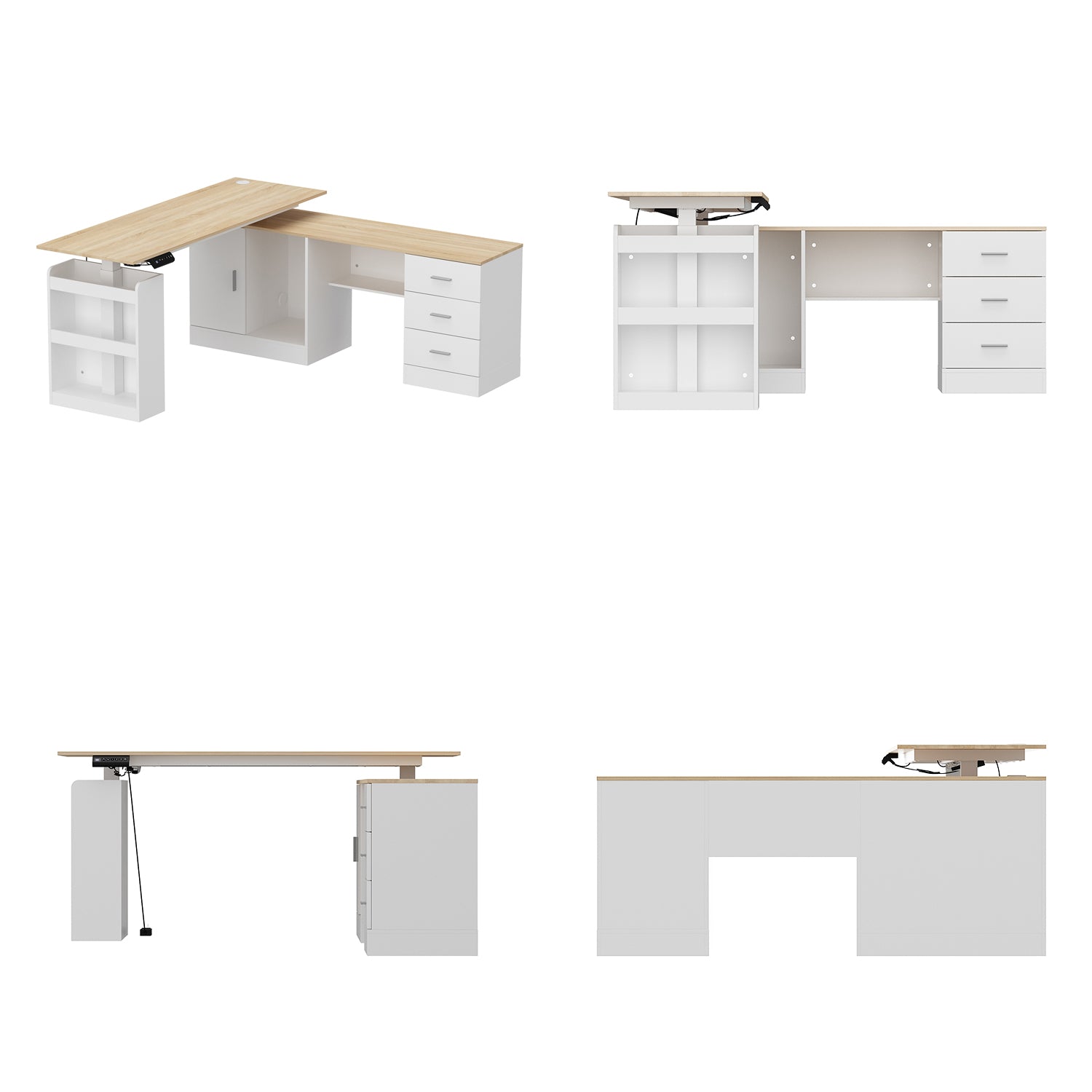Wiawg 63" Electric Height Adjustable Standing Desk, , L Shaped Home Office Table,Oak&White