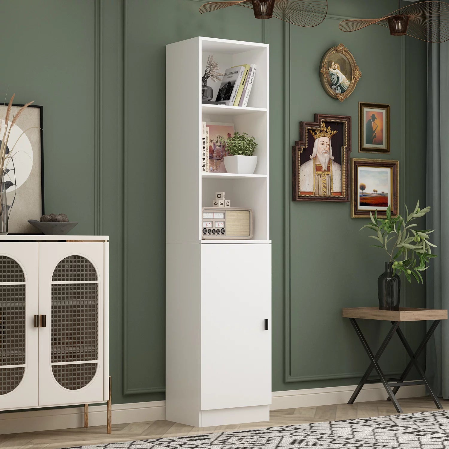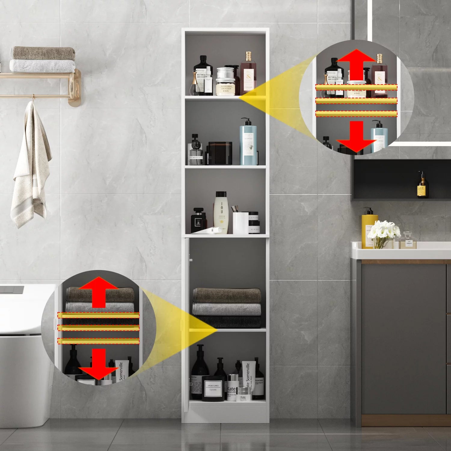 【Versatile Tall Linen Tower for Storage】: This vertical freestanding cabinet is not only a bathroom cabinet for toiletries, but also a display shelf in the living room to place trophies, collections, a pantry in the kitchen to put spices and tableware, or a bookcase in the study or bedroom for books and clothes. Help you get a tidy and clean living space. Made of high-quality MDF board with a waterproof painted finish, the practical bathroom stand can be clean and maintained easily. The tall storage cabinet is consisted of the 3 open shelves and cabinets with doors and a total of 5 compartments. Made of high-quality MDF board with a waterproof painted finish, the practical bathroom stand can be clean and maintained easily. With large capacity,the cabinet will enhance your life by making an otherwise messy bathroom more organised. Large space can store clothes, towels, shower gel, and other daily necessities according to your needs. Looking for a practical bathroom cabinet without taking up too much floor space? This tall and slim free-standing cabinet is the pick!