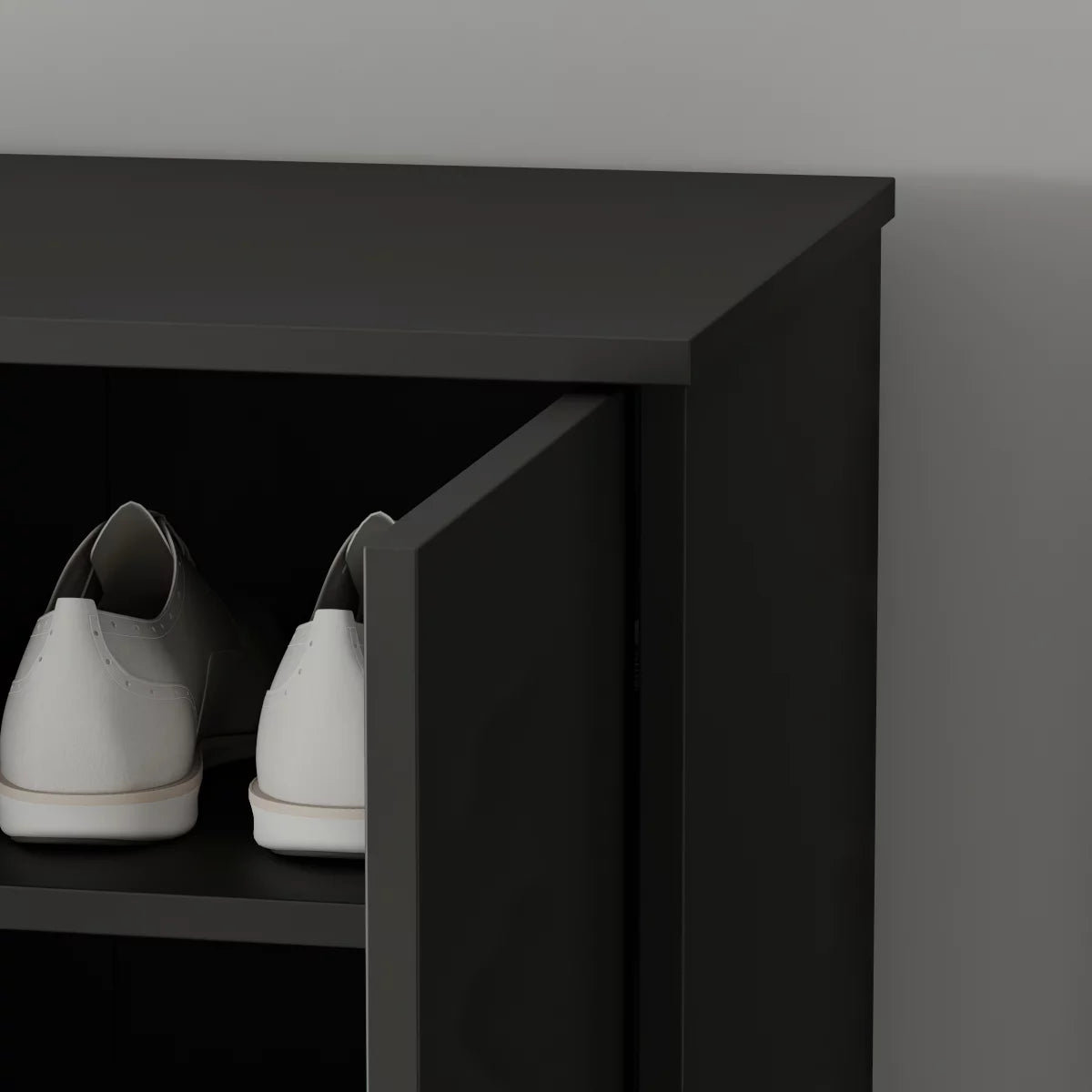 The DiDuDo Shoe Storage Cabinet offers versatility for your ever changing storage needs in home or office. The wheel mounted feature ensures easy cleaning beneath the cabinets and protects your stored items from water and dirt. The shoe storage cabinet features 8 individual shoe cubbies, with each cubby spacious enough to hold 3-4 pairs of shoes, keeping them neatly stored behind the two doors. Place larger items in the two shelves at the top of the cabinet. The DiDuDo Collection is constructed using laminated composite wood and features metal handles and adjustable hinges. Add our cabinet to create a storage system to convert any cluttered room into an organized space.