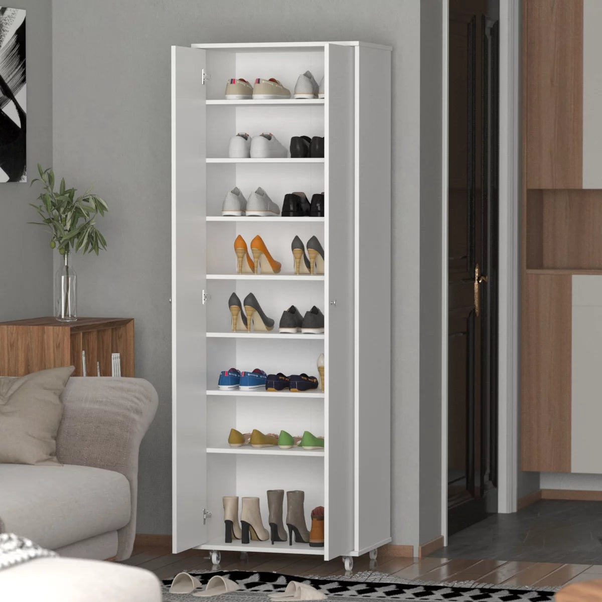 WIAWG 70.9" Large Shoe Cabinet with Wheels Wooden Tall Shoe Storage Rack Cabinet White
