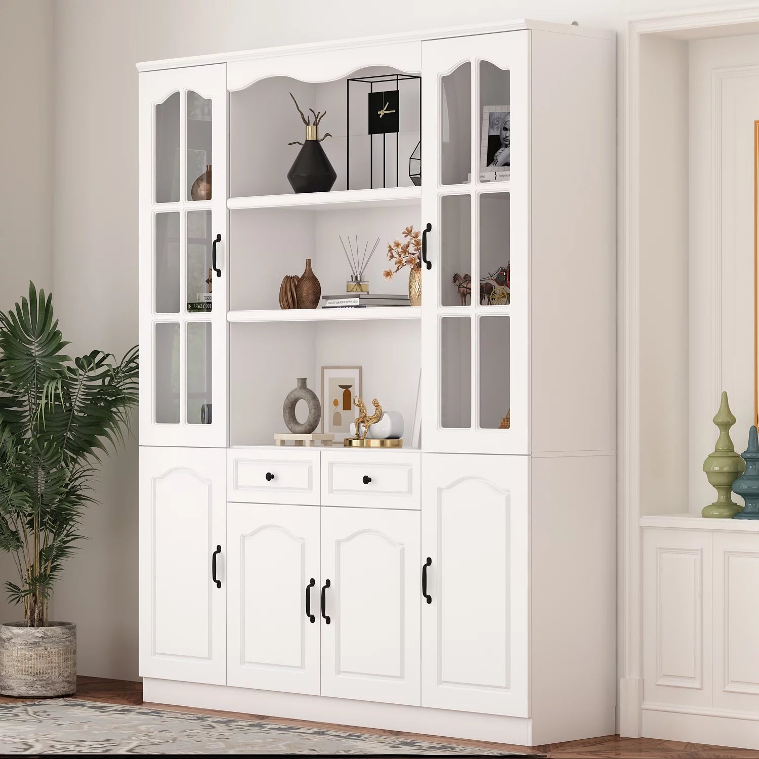 WIAWG 78.7" Tall Wooden Bookcase Display Cabinet with Glass Doors and Open Shelves for Home Office Living Room