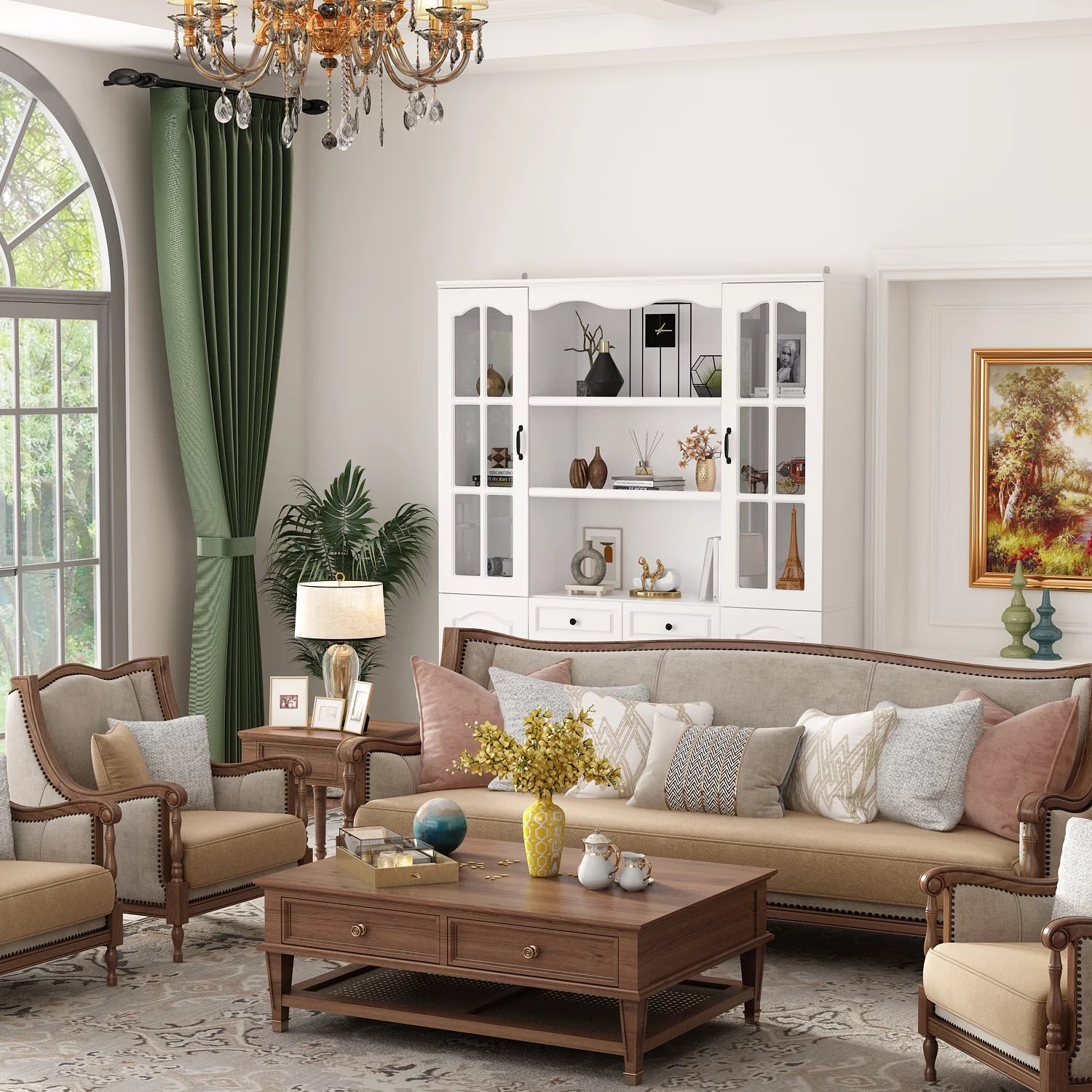 - The top shelves behind the glass doors are perfect for display crafts and store books