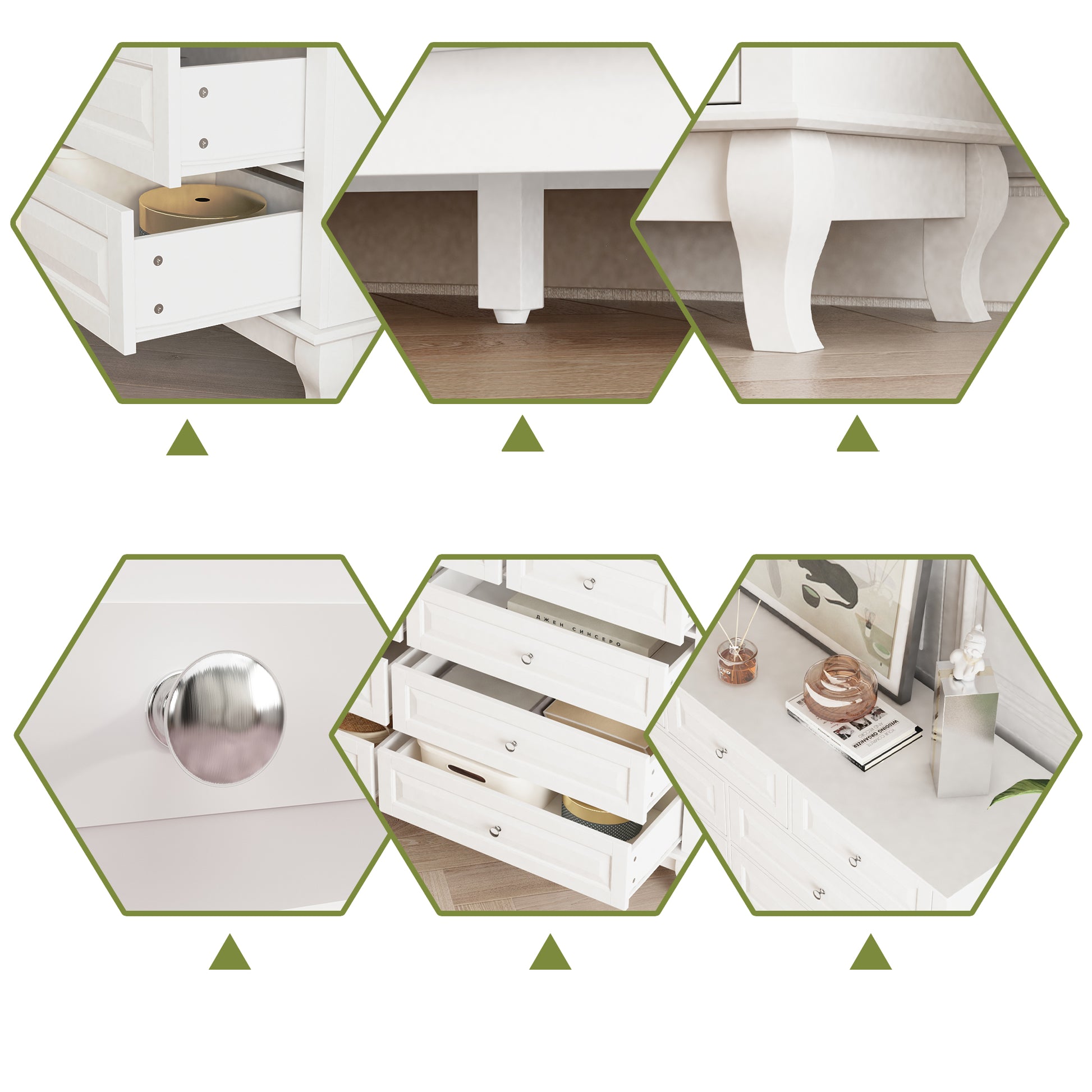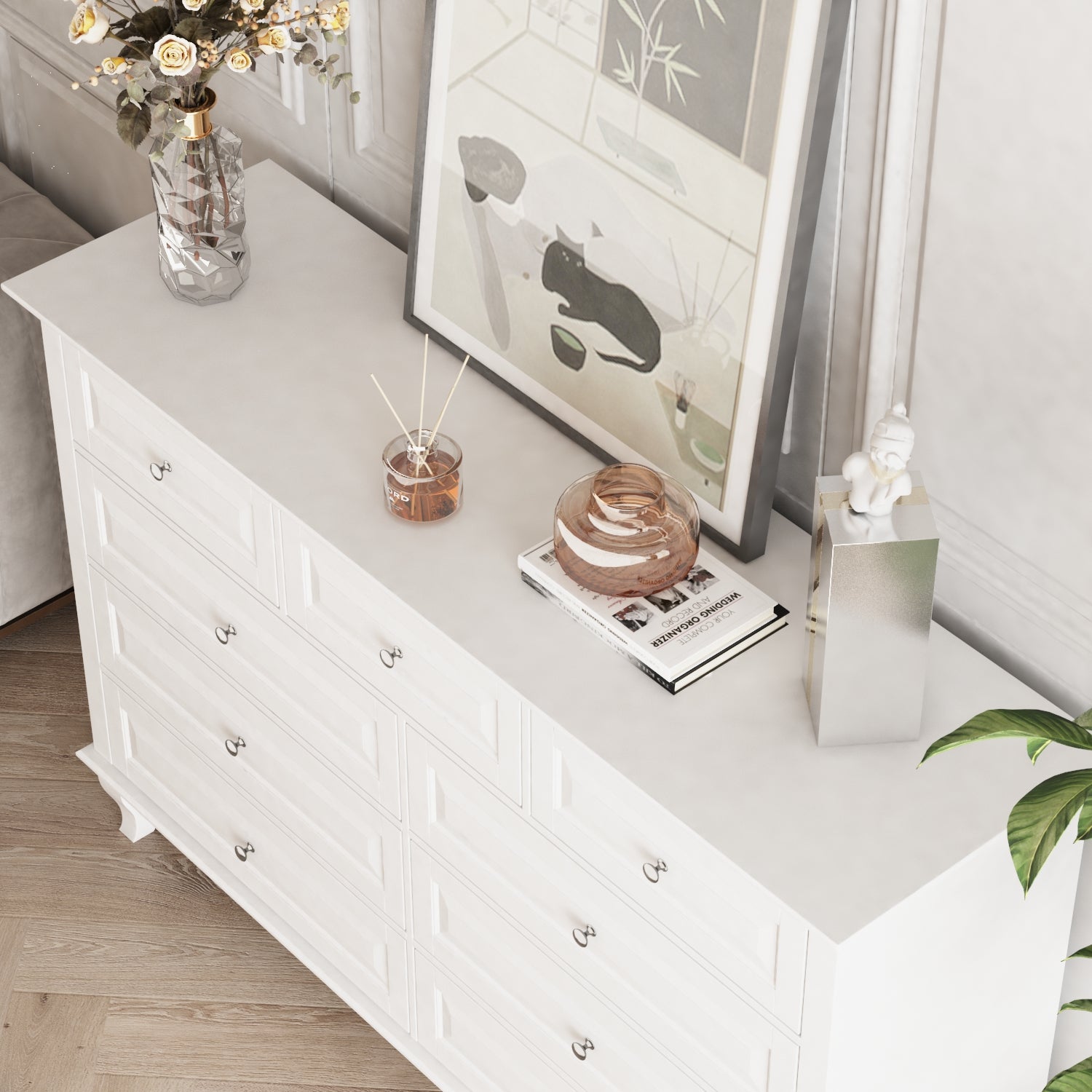 WIawg 9 Drawer Dresser with Carved Drawer Fronts & Solid Legs, 55.1" L White Modern Wood Storage Chest of Drawers for Bedroom, Living Room & Fitting Room