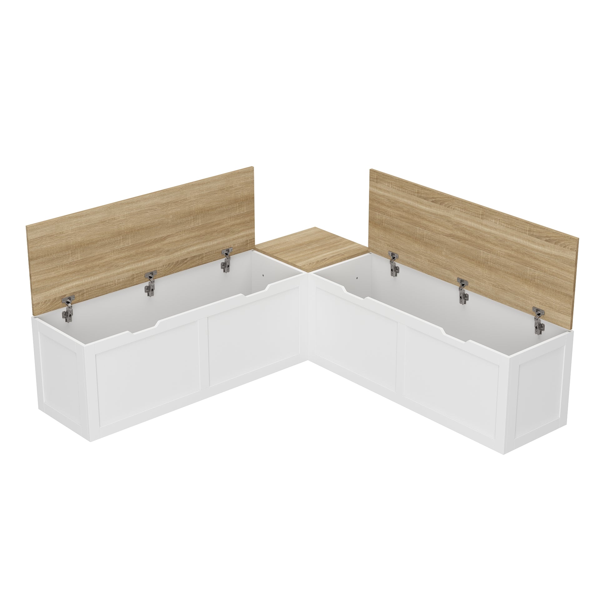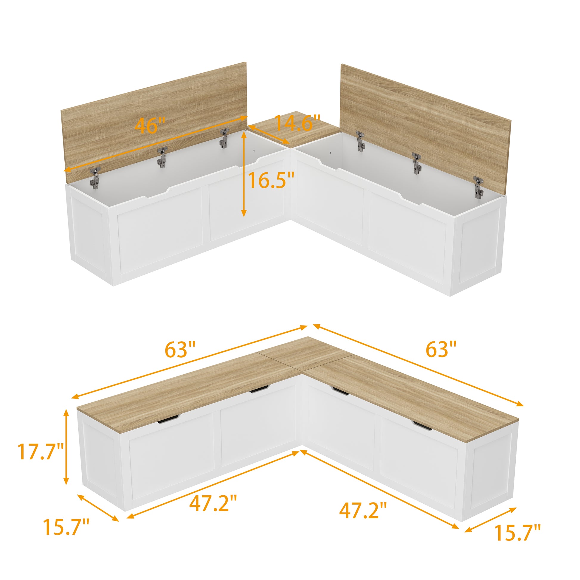 WIAWG Casual Wood Corner Dining Breakfast, L Shape Kitchen Corner Nook Bench Seating with Hidden Storage, White and Oak, 63”D x 63”W x 17.7”H