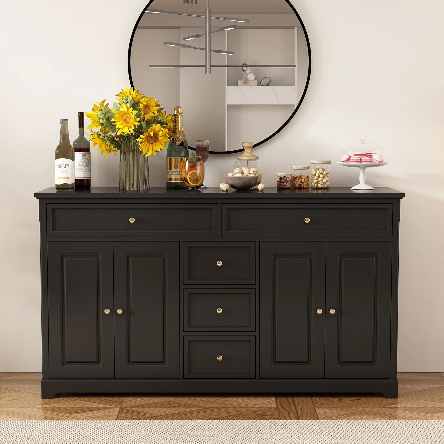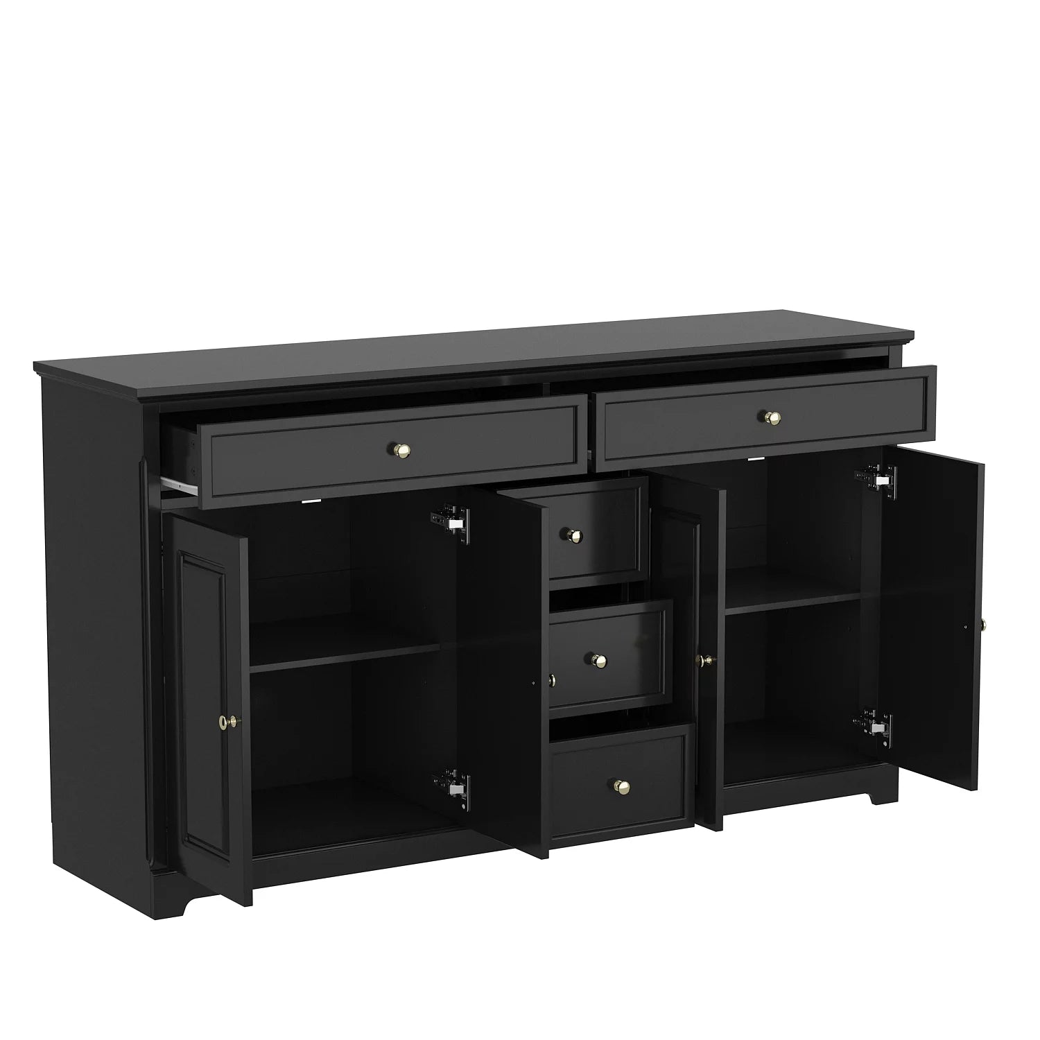 WIAWG Dresser with 5 Drawers, 4-Door Accent Sideboard Buffet, 59.1" Wide, Black