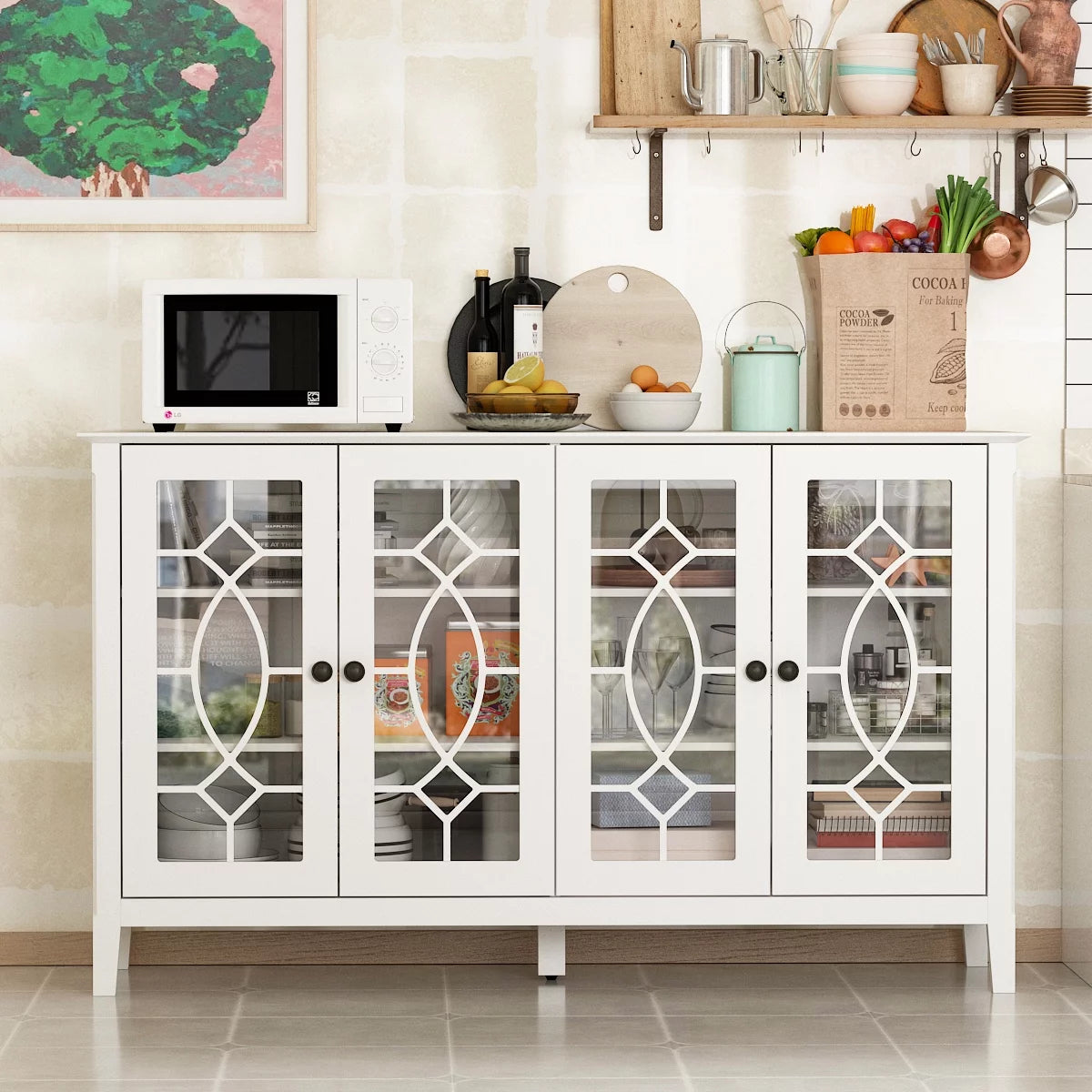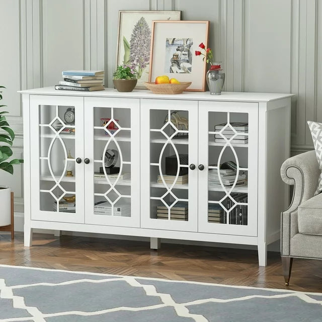 WIAWG Entertainment Center White TV Stand Cabinet Sideboard with Glass Door
