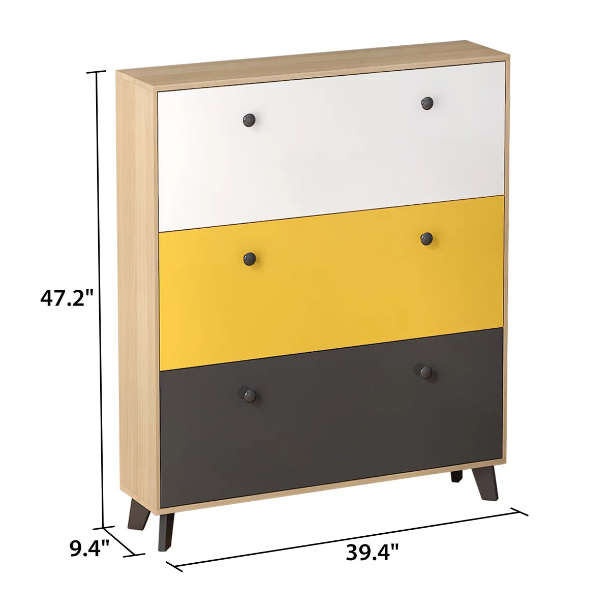 The 3-drawer shoe cabinet creates a relaxed, tidy atmosphere and protects your shoes from damage. The shoe cabinet can hold 18 to 24 pairs of shoes in three drop-down compartments. This shoe cabinet is made of engineered wood, sturdy and durable, not easy to warp. The smooth handles and the available finishes of your choice make this shoe cabinet more contemporary. A note about wood composites or engineered wood: usually called Mdf, which stands for "Medium density fiberboard", this type of wood composite is made of compressed wood fibers and has many advantages, including moderate price, consistency and chemical resistance sex. Deformed or decayed over time.