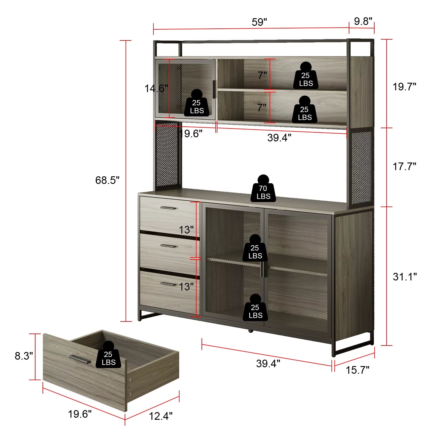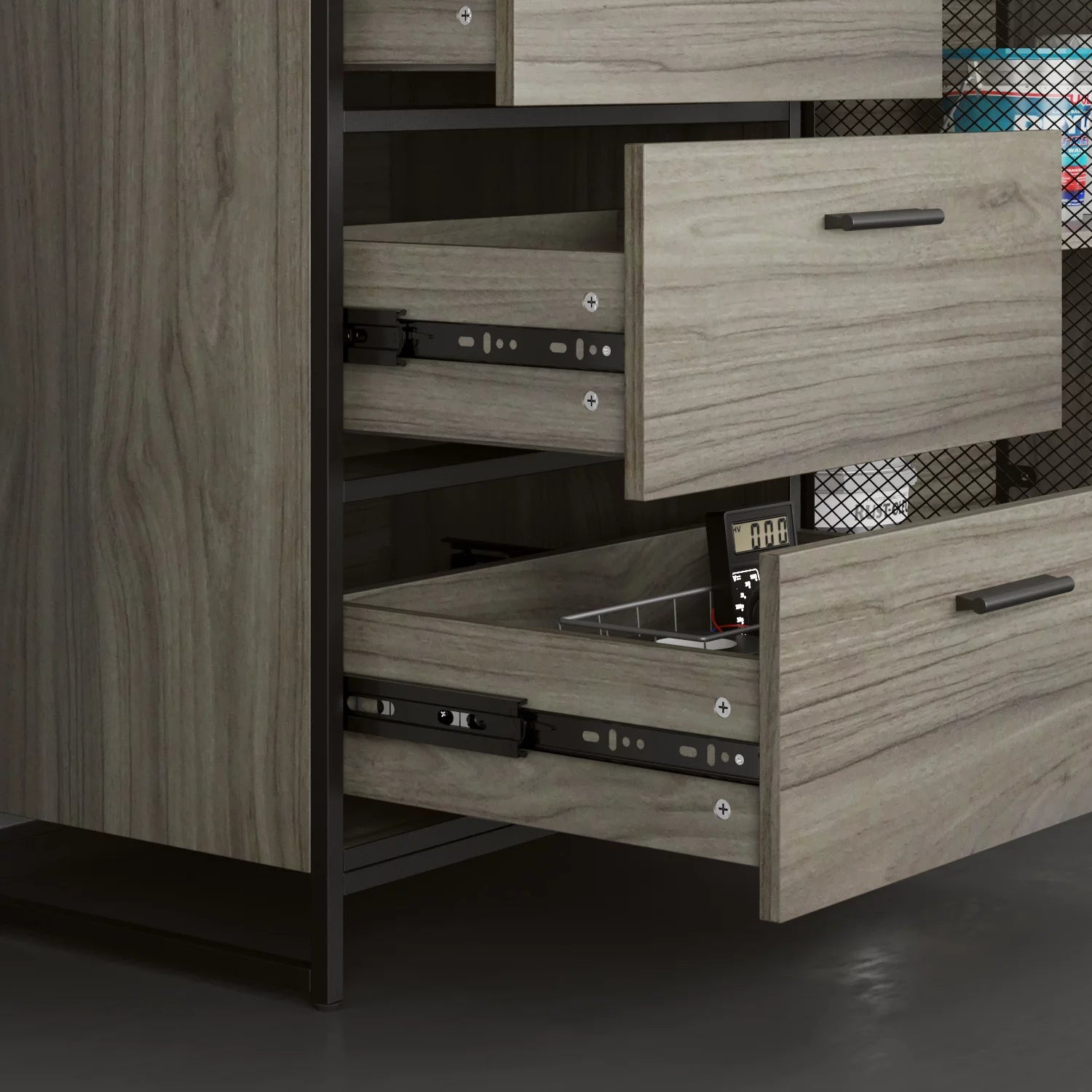 WIAWG Garage Cabinet with 3 Drawers and Metal Mesh Door, Industrial Mutifunctional Tool Storage Cabinet for Warehouse, Basement, Home Office (Rustic Gray)
