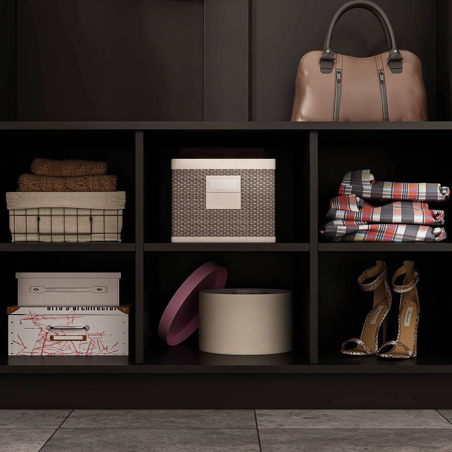 This hall tree sleek design fits in with all decors and provides the essential storage space you need. Crafted from MDF, its hutch offers open shelf and 4 hooks, perfect for tucking away coats, hats, gloves, and other outdoor wear, at the same time six storage cubbies under the bench, it can be used as shoe cabinet. Keep it neat and organized with this hall tree! The hall tree is perfect for any entryway, hallway, garage, or laundry room space.