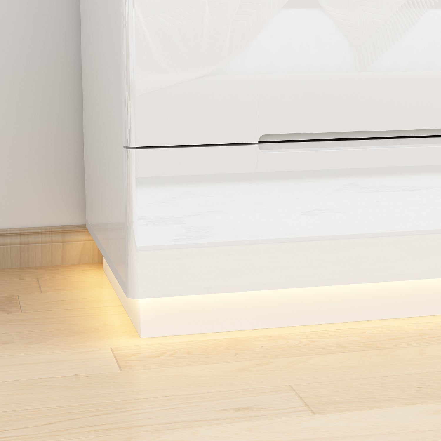 - LED Storage Dresser: 8-drawer dresser features RGB lighting and a glossy white finish, combining elegance with functionality. Perfect as both storage and a nightstand.