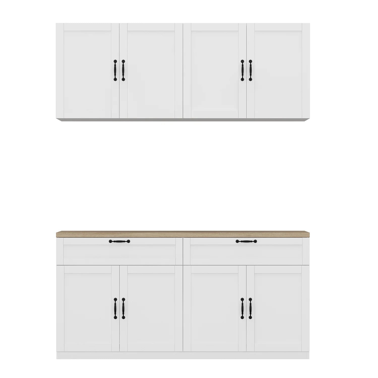 Looking to add a simple kitchen pantry to your home? This white 8-door pantry is exactly what you want!It includes 4 cabinets with 8 built-in shelves for storing a variety of dishes and cookware.Two large drawers are used for storing rags, disposable gloves, and other items.The spacious countertop can hold many large appliances and is also convenient for you to chop and prepare vegetables.Its minimalist look can easily fit into your home's decor and make your kitchen look clean and tidy.
