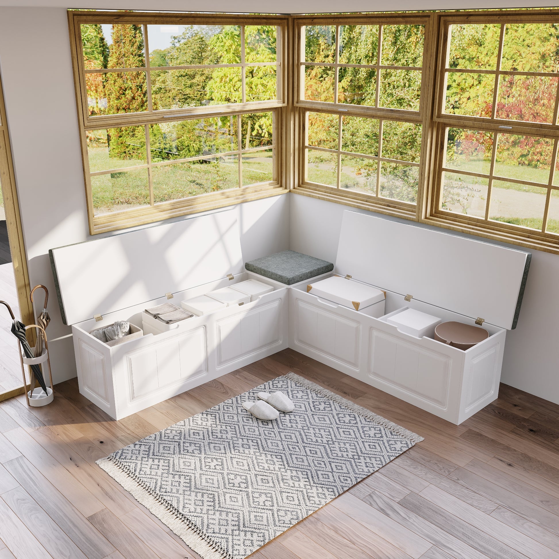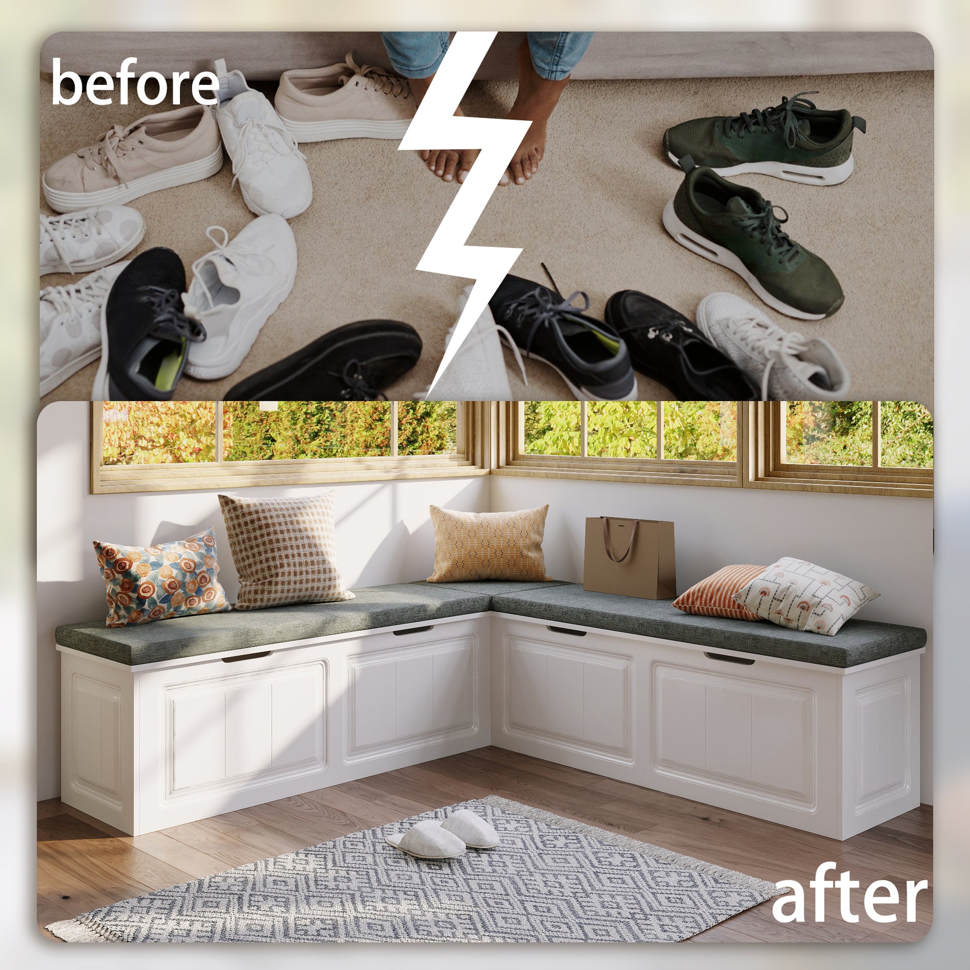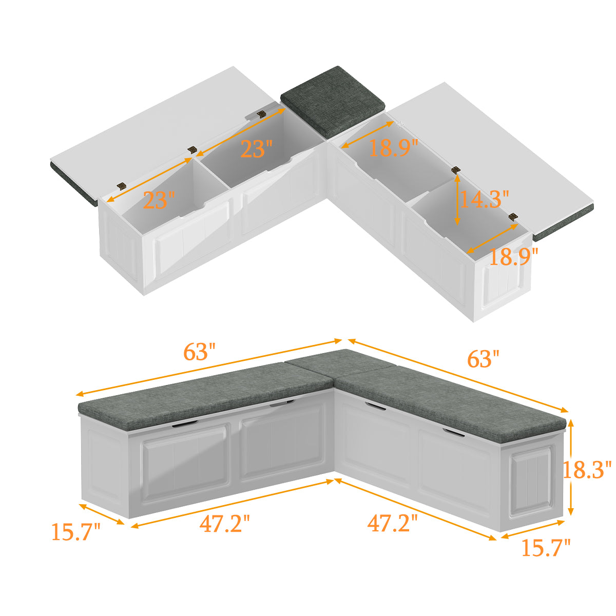 WIAWG L Shape Backless Corner Nook with Storage,Kitchen Breakfast Nook Bench,Shoe Benches for Entryway Cloakroom, White&Grey, 63”D x 63”W x 18.3”H