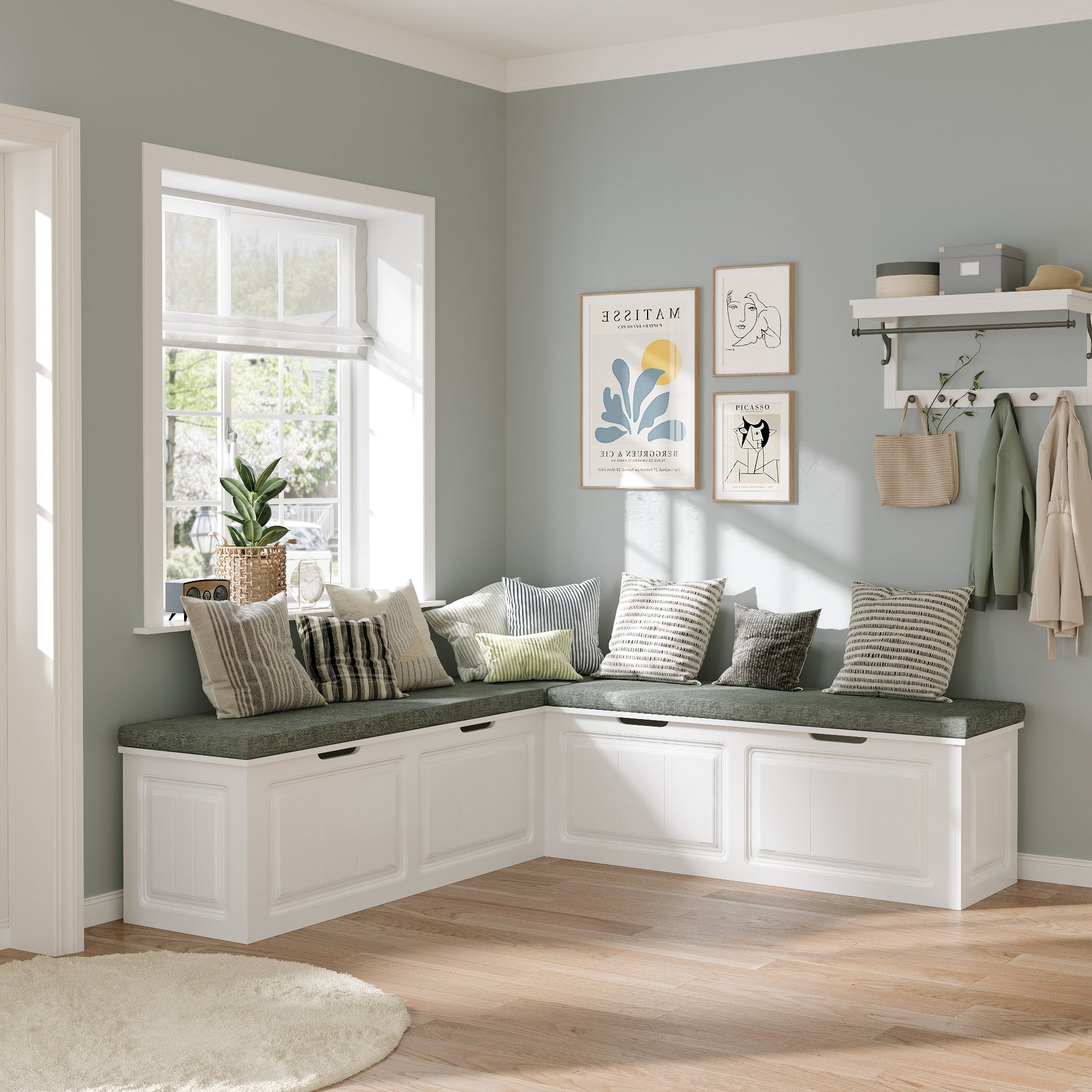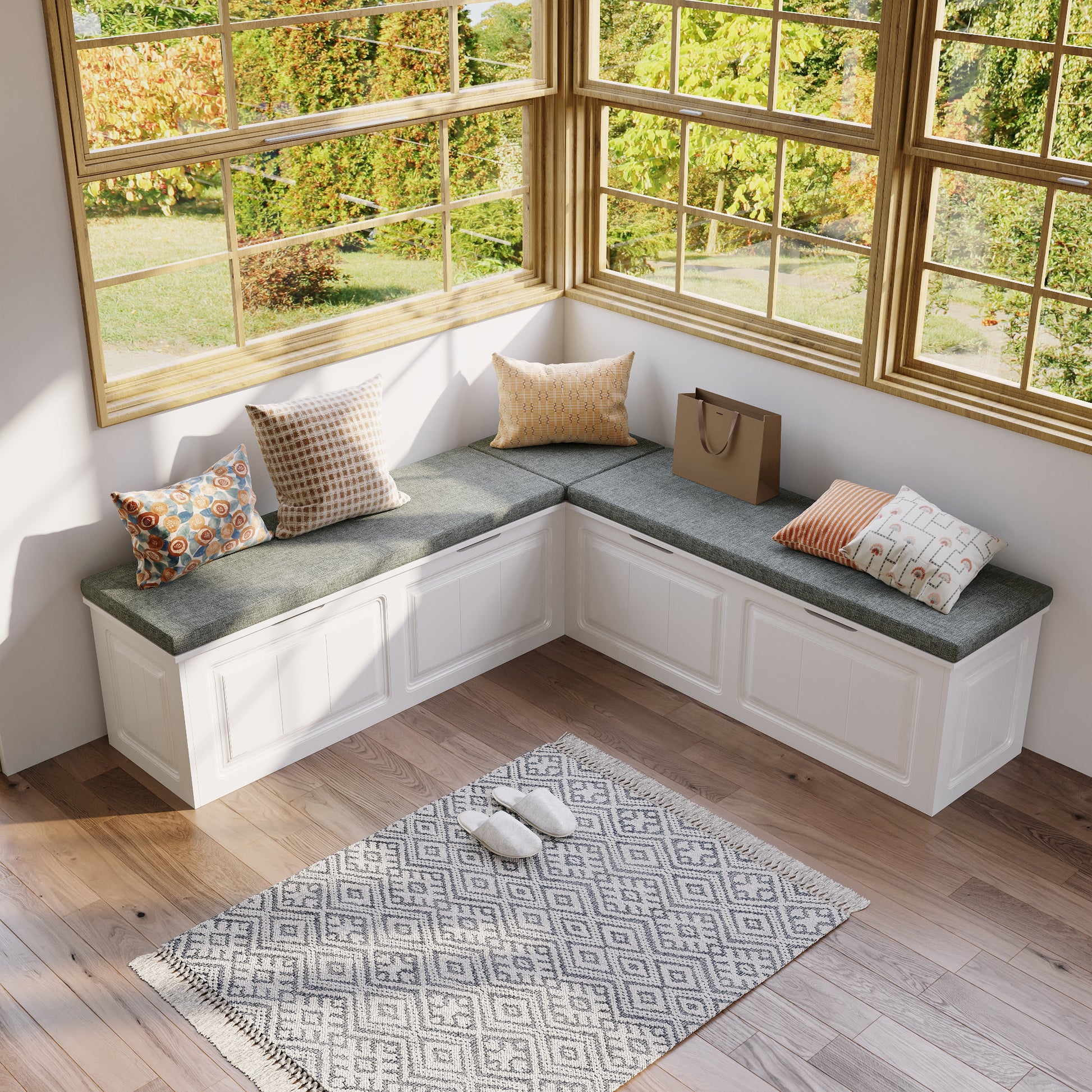 - ✔️L-Shape Bench: Space-saving L-shaped design fits snugly in corners. Features elegant vacuum-formed patterns and a modern two-tone finish for a built-in look.