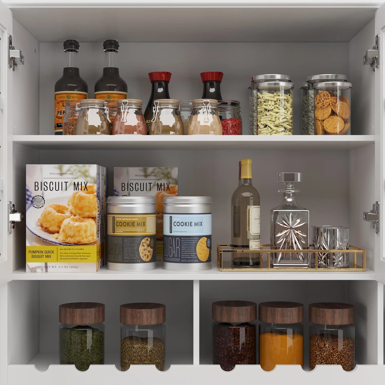 The kitchen cabinet is the ideal choice to decorate the room, versatile and unique. Made of high quality MDF panels, wine bar cabinet is more stable and has better load-bearing capacity.There are a spacious table top, three drawers and four cabinet, you can depending on your needs stora your coffee maker and cups, plate, or even your favorite decorations. What's more, the Wine Bar Cabinet is designed with 12 bottle wine racks and a 2 row stemware holders, you can better organize your wine and liquor. This buffet hutch features various storage space to fully meet your requirements. Spacious center allows you to place microwave oven, toaster and other appliances. Dual transparent tempered glass doors combined distinctive appearance with metal hinge will offer better user experience.With its versatile style, it can be placed not only as a Wine Cabinet in the Home Bar, but also as a Coffee Bar Cabinet or Console Table in Dining Room.