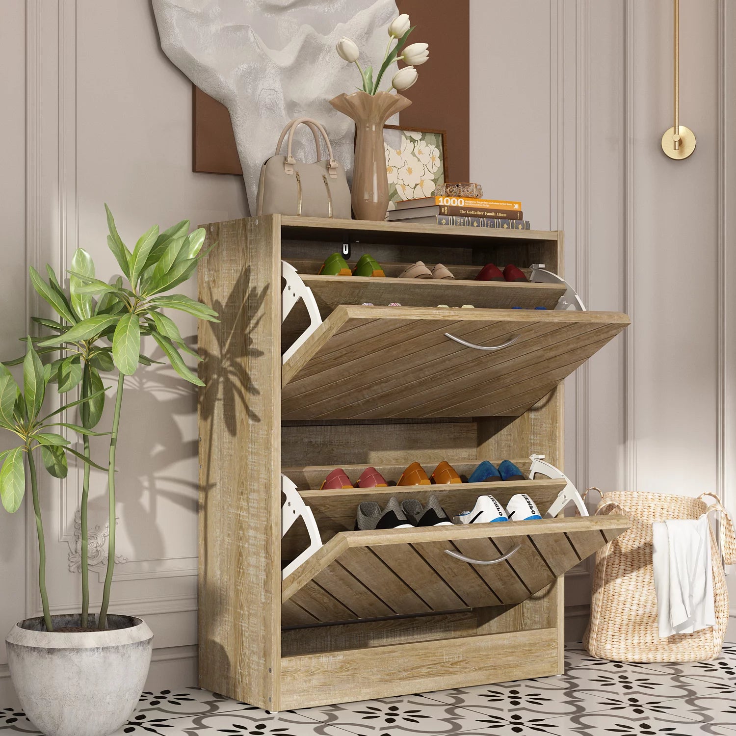 WIAWG Modern 2 Tier Shoe Cabinet Shoe Rack Free Standing Shoe Storage Cabinet Organizer Beige