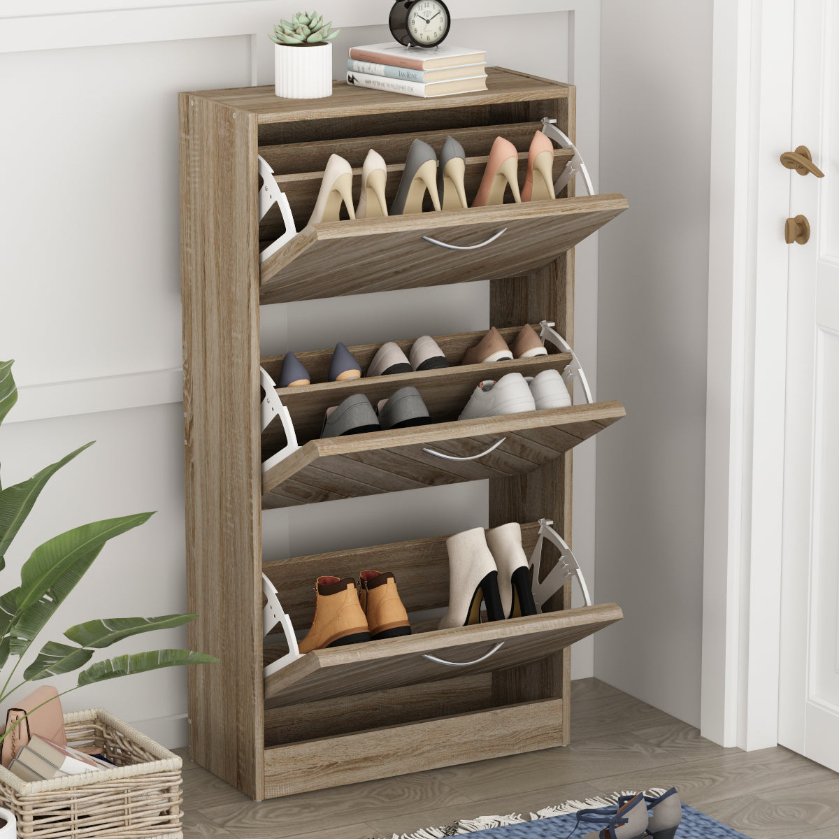WIAWG Modern 3 Tier Shoe Cabinet Shoe Rack Free Standing Shoe Storage Cabinet Organizer Beige