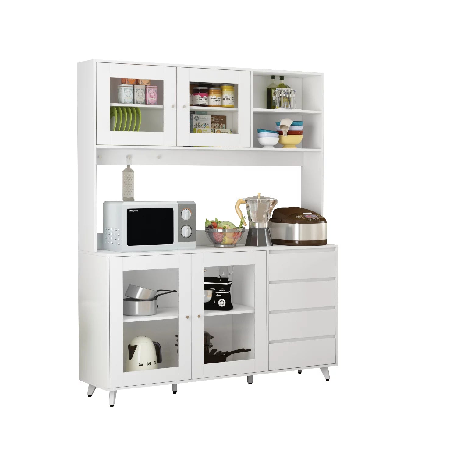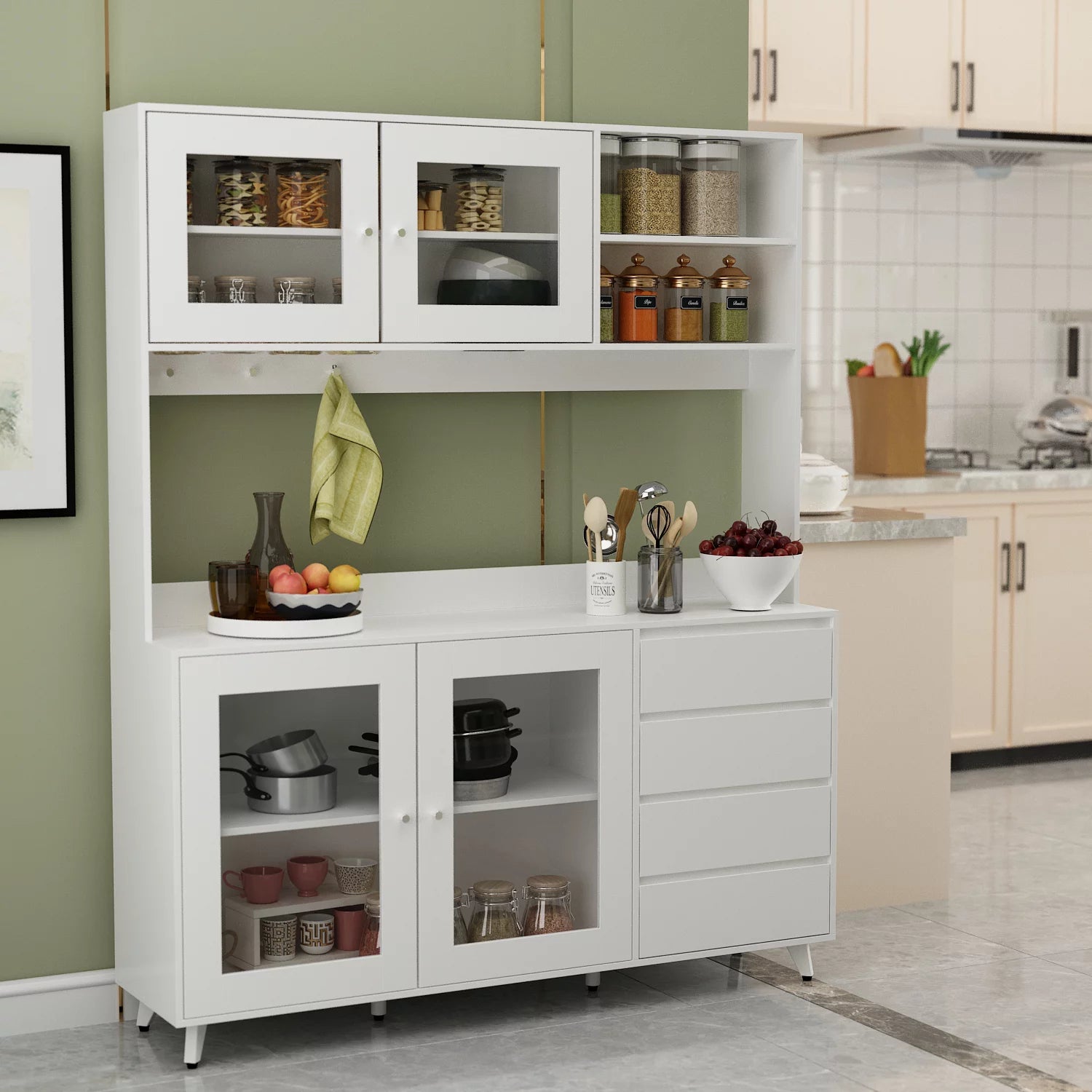 WIAWG Modern Kitchen Pantry Storage Cabinet with Hutch and Drawers,White Sideboard Buffet Cupboard with Glass Door,63"