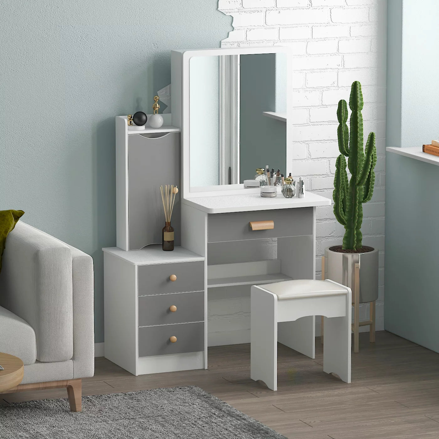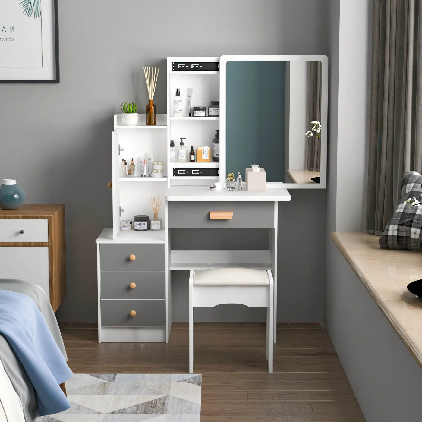 WIAWG Modern Make up Vanity Set with Mirror, Vanity Dressing Table with Storage for Girl, Gray