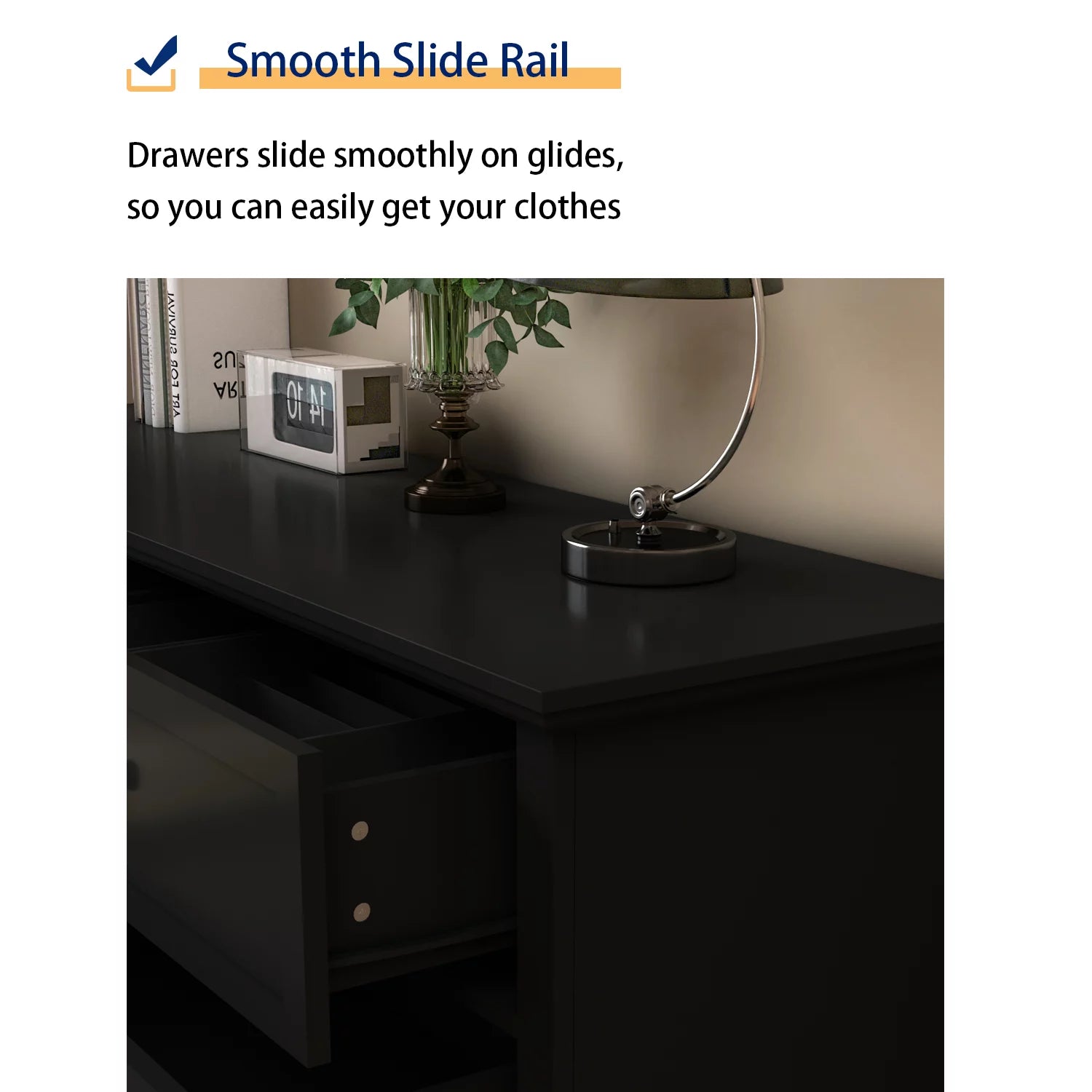 WIAWG Modern Mid Century 6 Drawer Dresser, Double Dresser Chest of Drawer for Bedroom Black