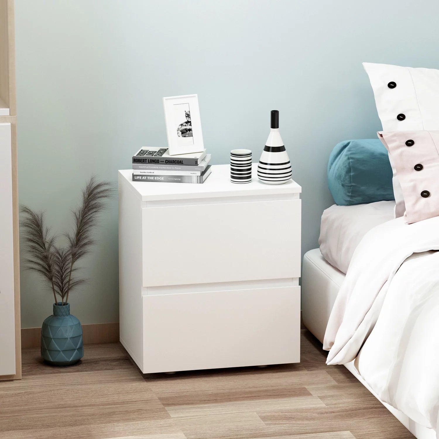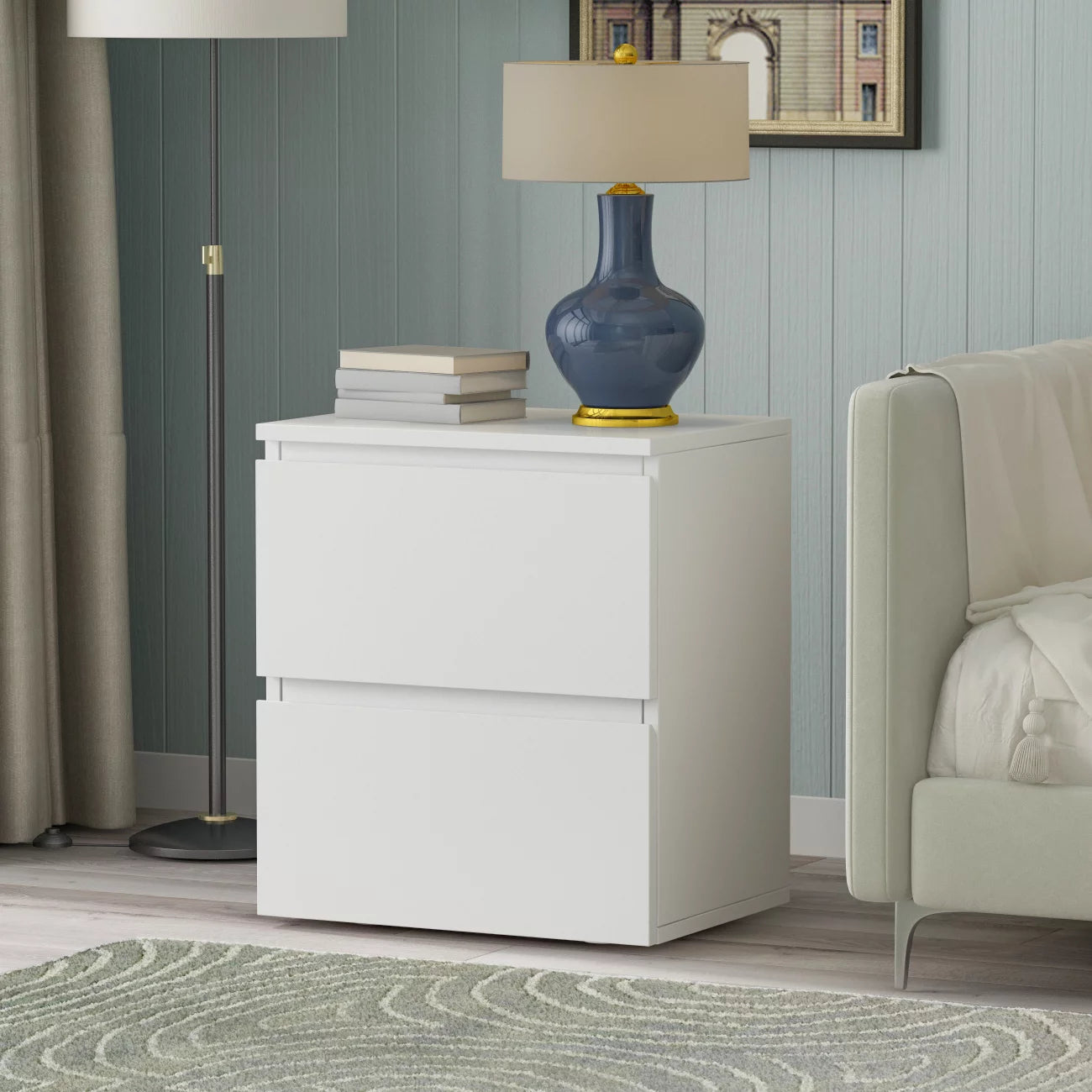 WIAWG Modern Nightstand End Table with 2 Drawers Side Table for Bedroom Living Room White