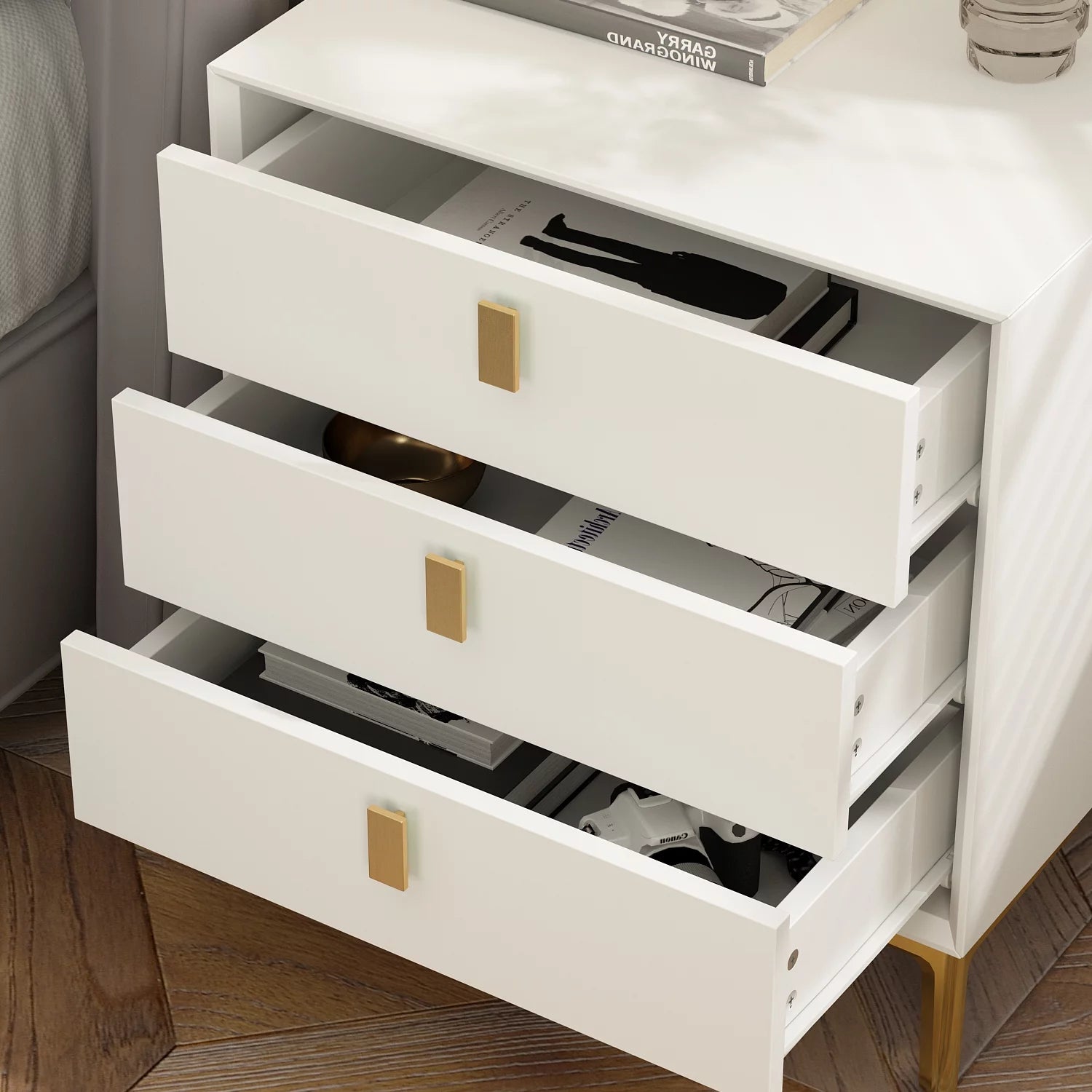 WIAWG Modern Nightstand for Bedroom, Bedside Table with 3 Drawers, White
